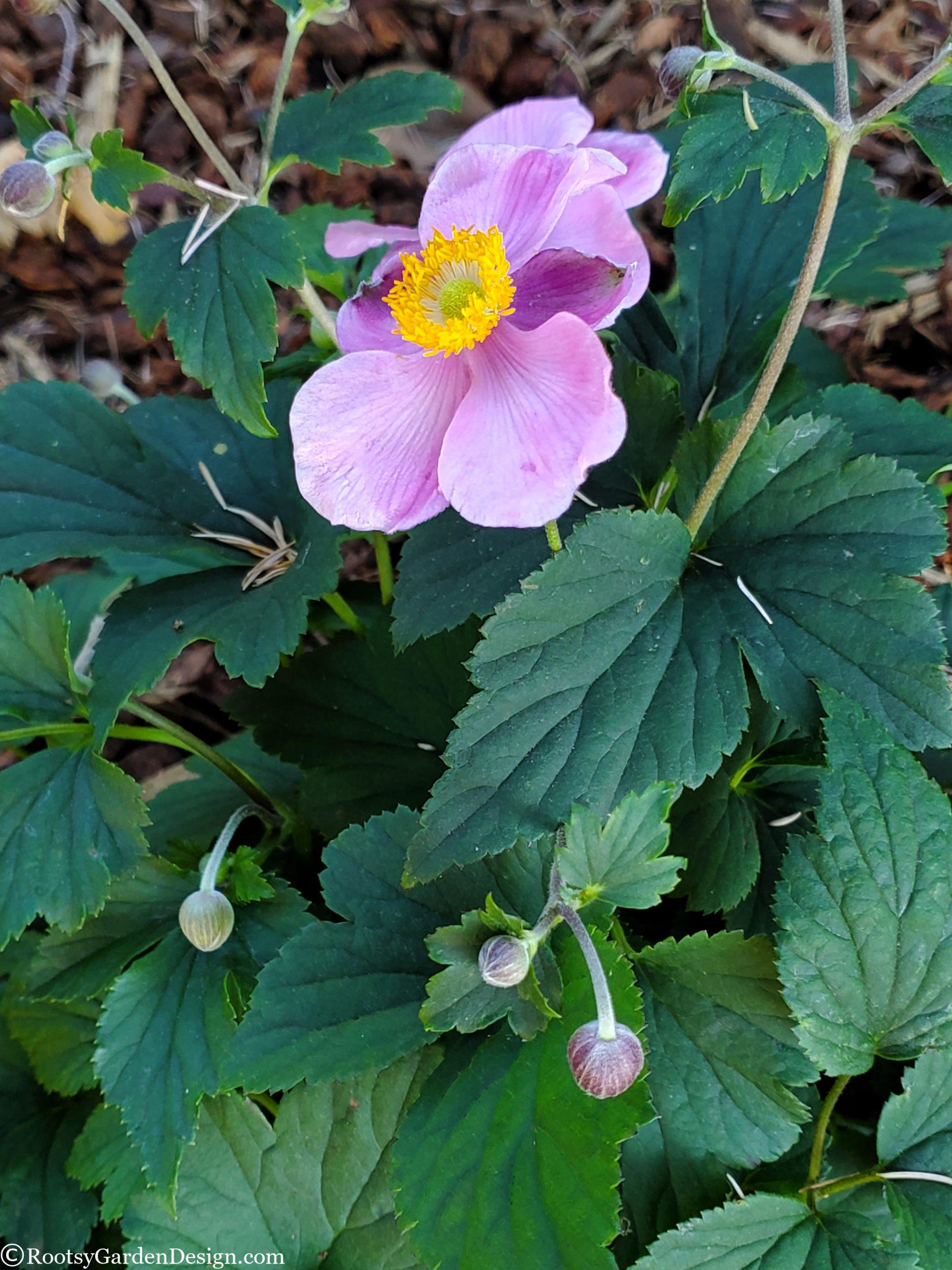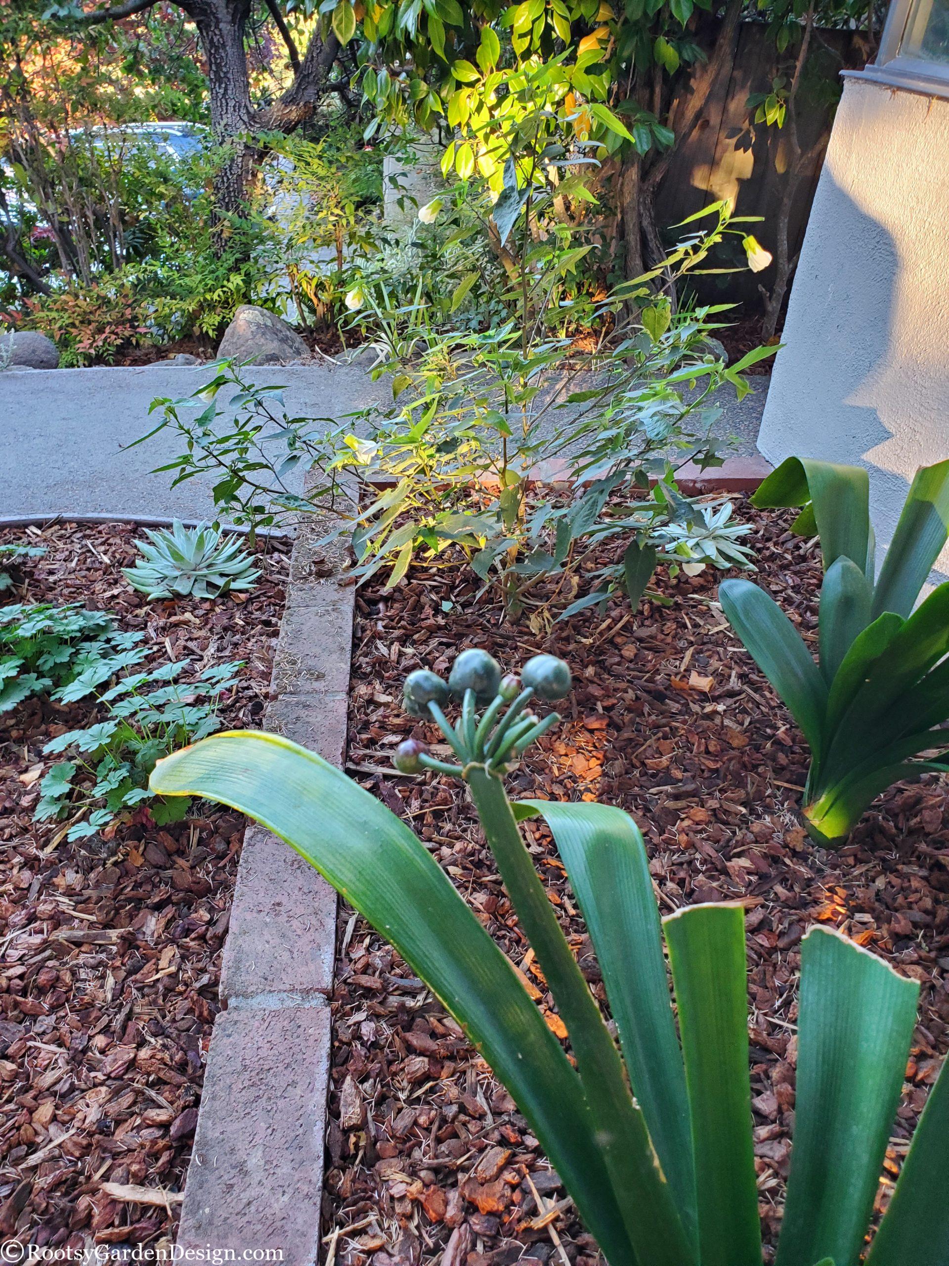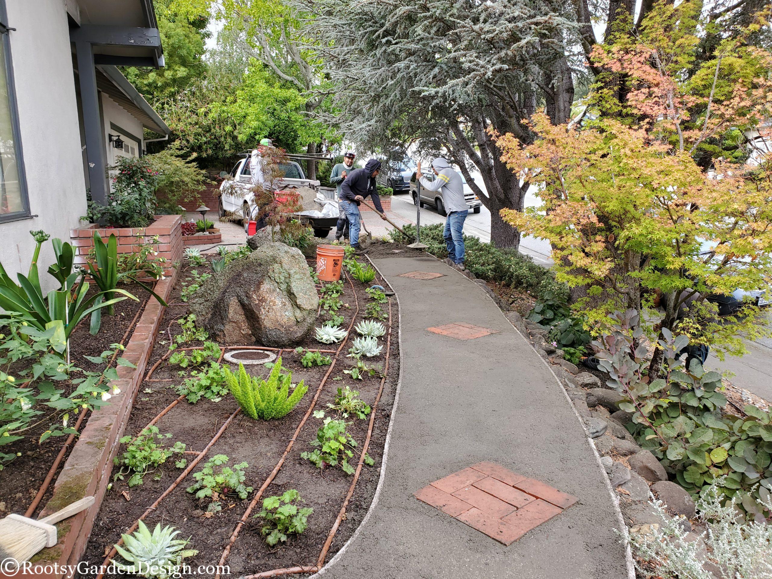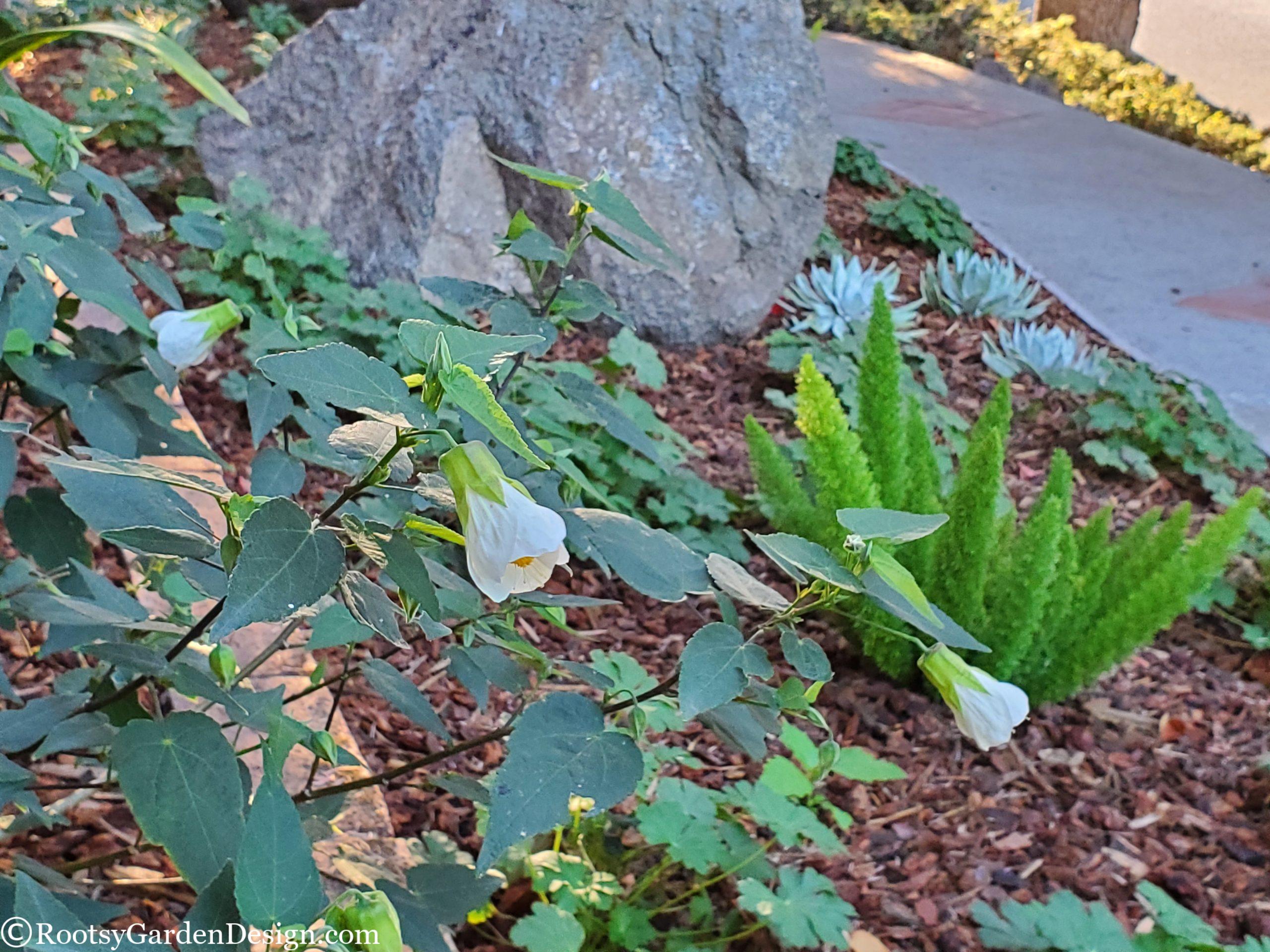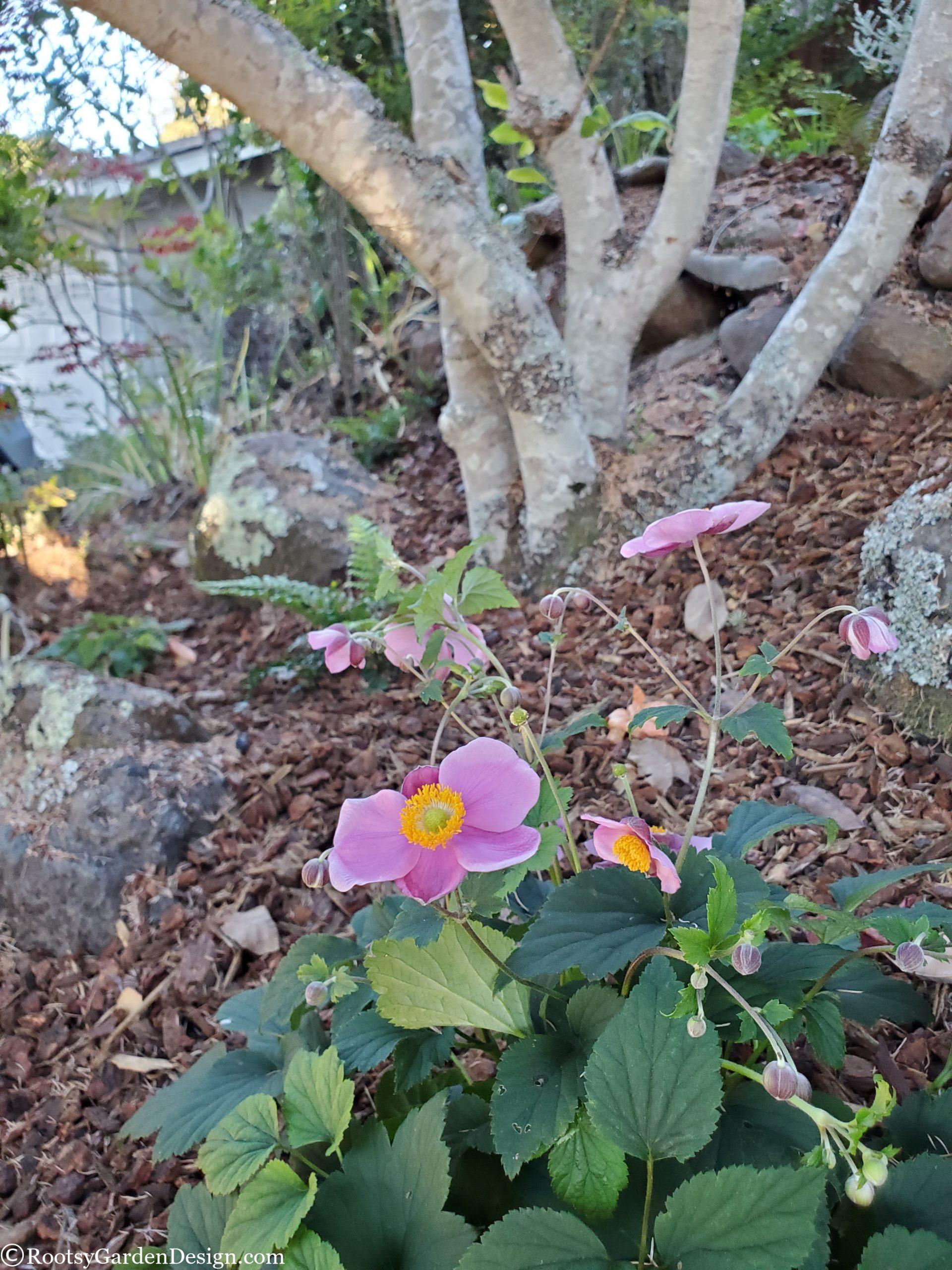 In preparation for her 95th birthday party, our client requested a plant refresh in her front yard garden. This very shady space was lacking color and was suffering from hydrophobic soil covered in plastic weed barrier. We amended the soil, installed more efficient irrigation, and replaced the plastic with a healthy layer of wood mulch to naturally minimize weeds, help retain moisture, and condition the soil. We didn’t modify any of the existing hardscape, but did bring in some beautiful boulders to enhance year-round interest. We selected shade loving plants with interesting foliage and varied bloom times to ensure our client will find color and interest every time she looks out the window.