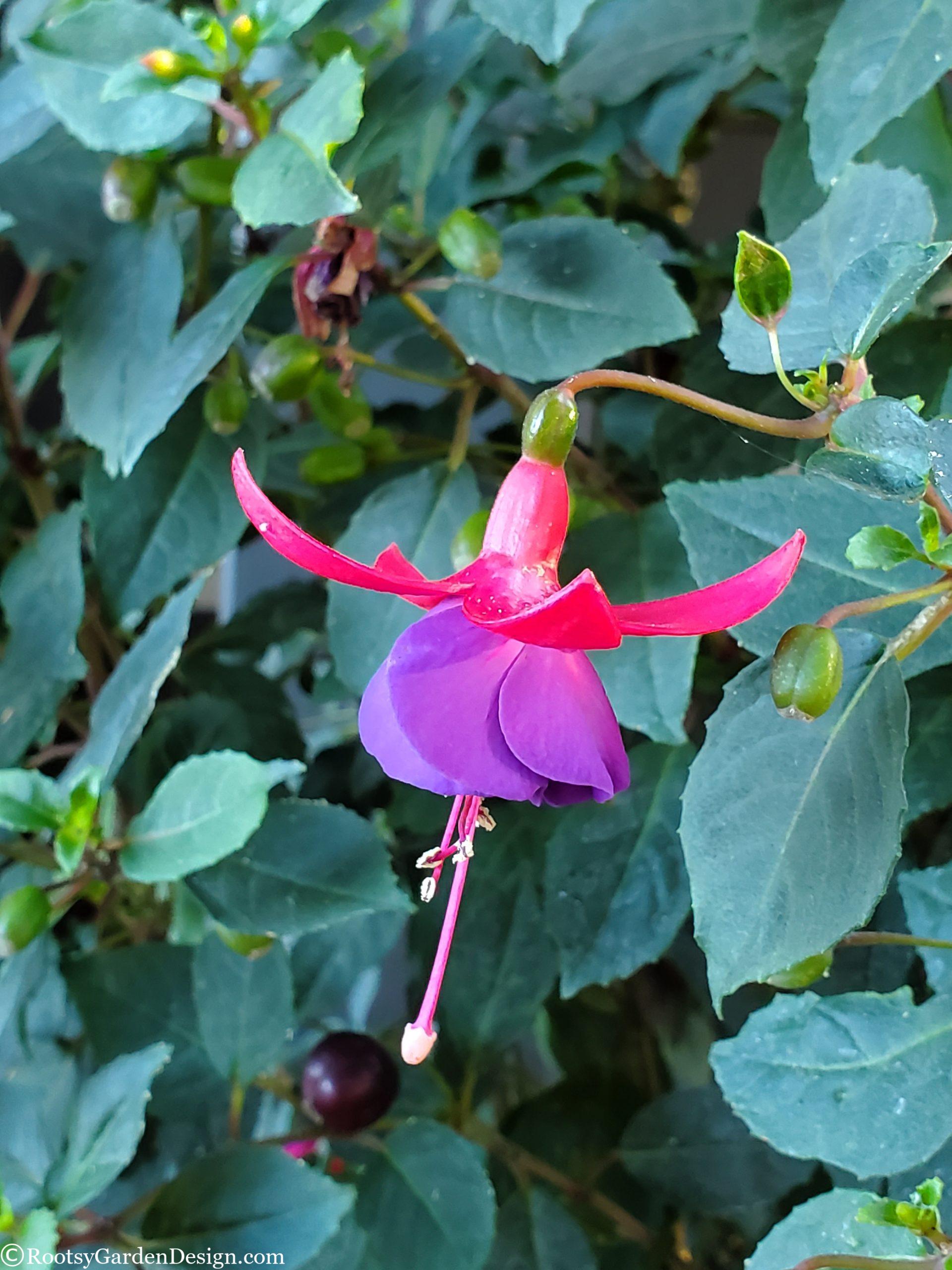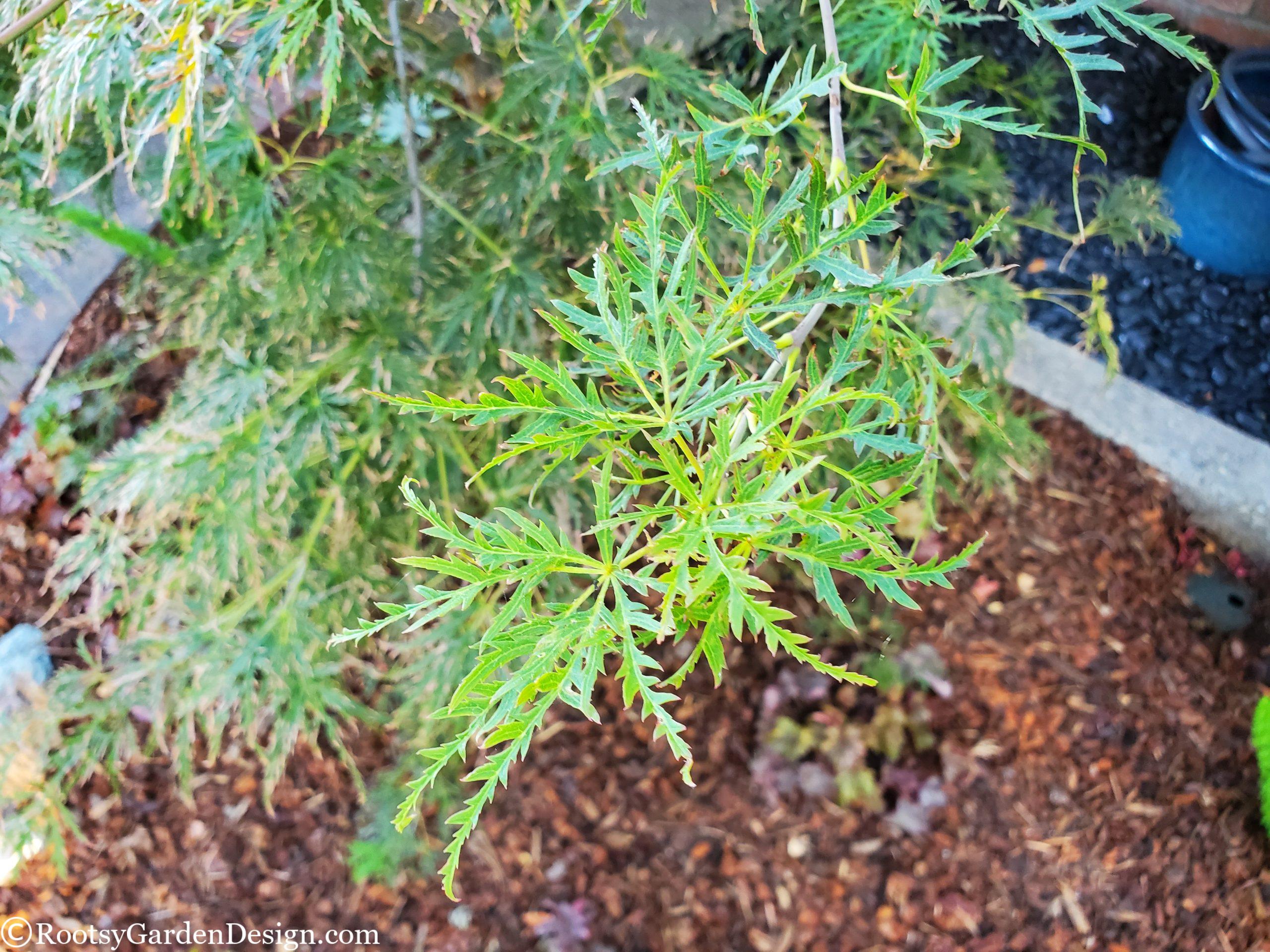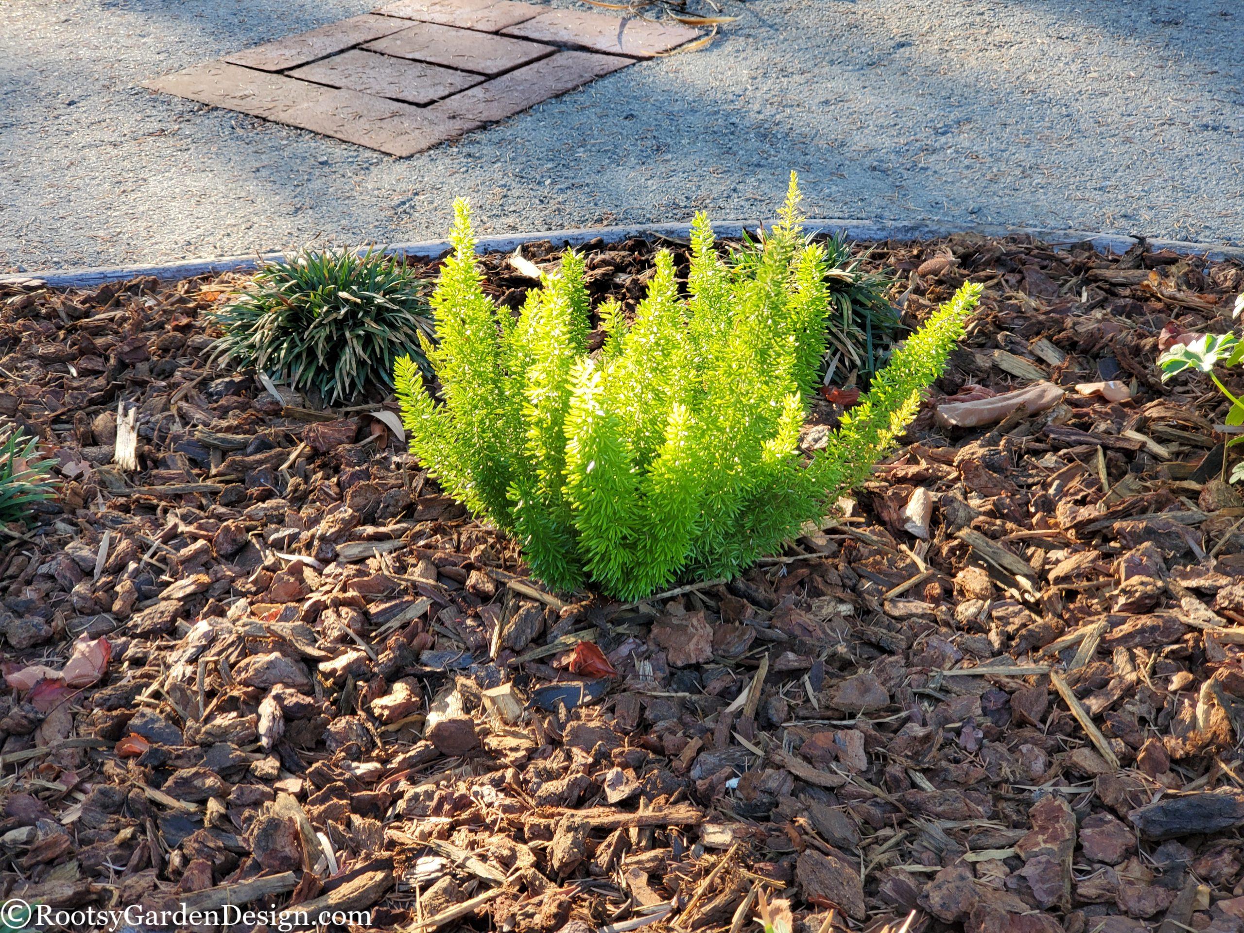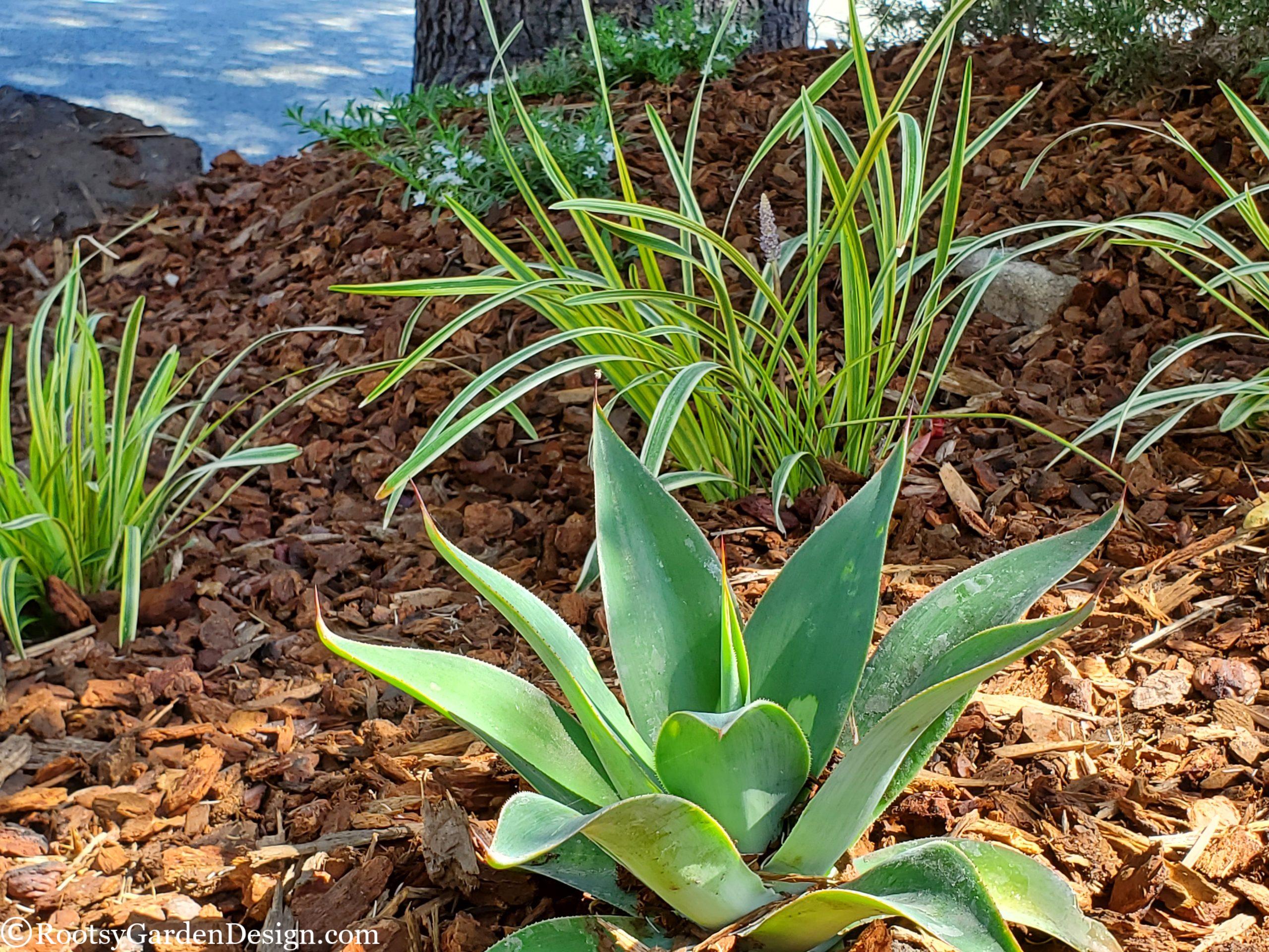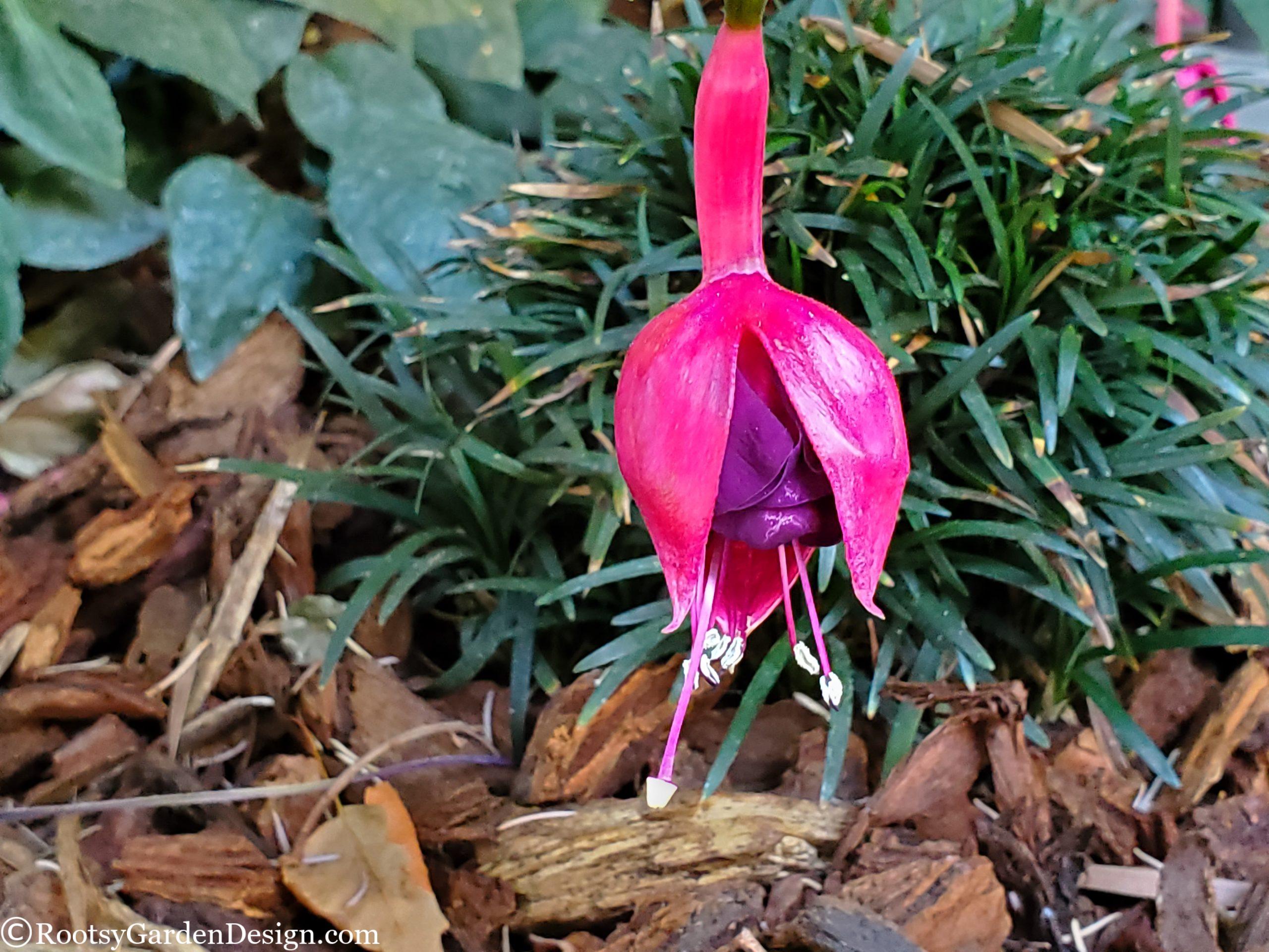 In preparation for her 95th birthday party, our client requested a plant refresh in her front yard garden. This very shady space was lacking color and was suffering from hydrophobic soil covered in plastic weed barrier. We amended the soil, installed more efficient irrigation, and replaced the plastic with a healthy layer of wood mulch to naturally minimize weeds, help retain moisture, and condition the soil. We didn’t modify any of the existing hardscape, but did bring in some beautiful boulders to enhance year-round interest. We selected shade loving plants with interesting foliage and varied bloom times to ensure our client will find color and interest every time she looks out the window.