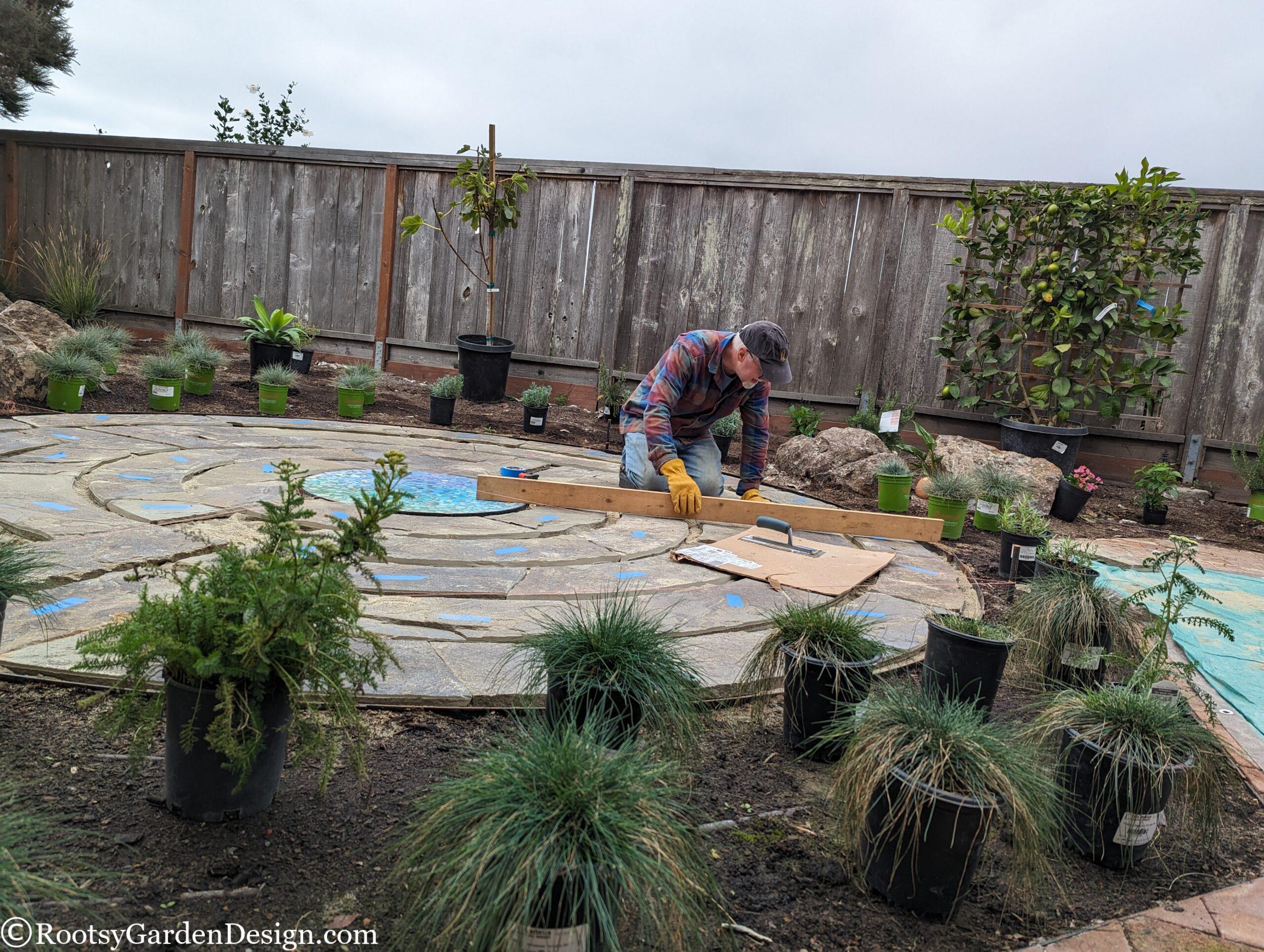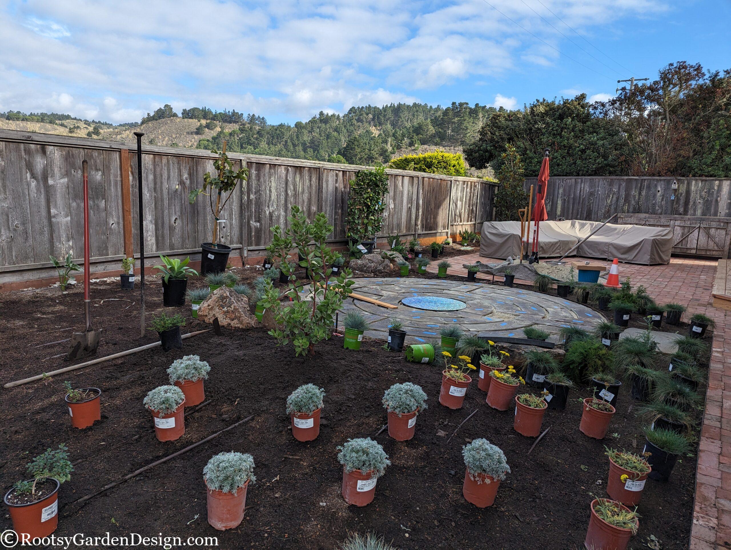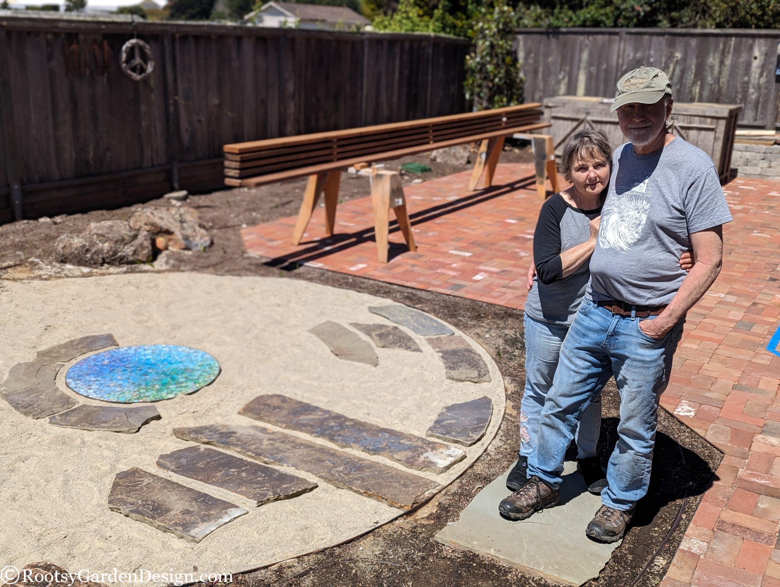 When we decided to relandscape our overgrown backyard, we reached out to Rootsy Garden Design. We never would have achieved what we have without them. The process was a journey of change and discovery, that Laura the owner helped guide and inspire us. We started with a long wish list: things we wanted to retain, multiple seating areas, generous space for entertaining to make the most of a sunny corner of a relatively shady North-facing yard, emphasize California Natives. We also wanted low maintenance which included a Labyrinth. What a challenge! We worked on some of the project ourselves, Laura’s guidance there was indispensable for choosing between those tasks that we could accomplish and those better left to professionals. Laura has an unfailing eye for design, that we really have only fully appreciated now that the project is complete. Our space is peaceful, spiritual and yet functional but also full of thoughtful elements with unexpected vistas.