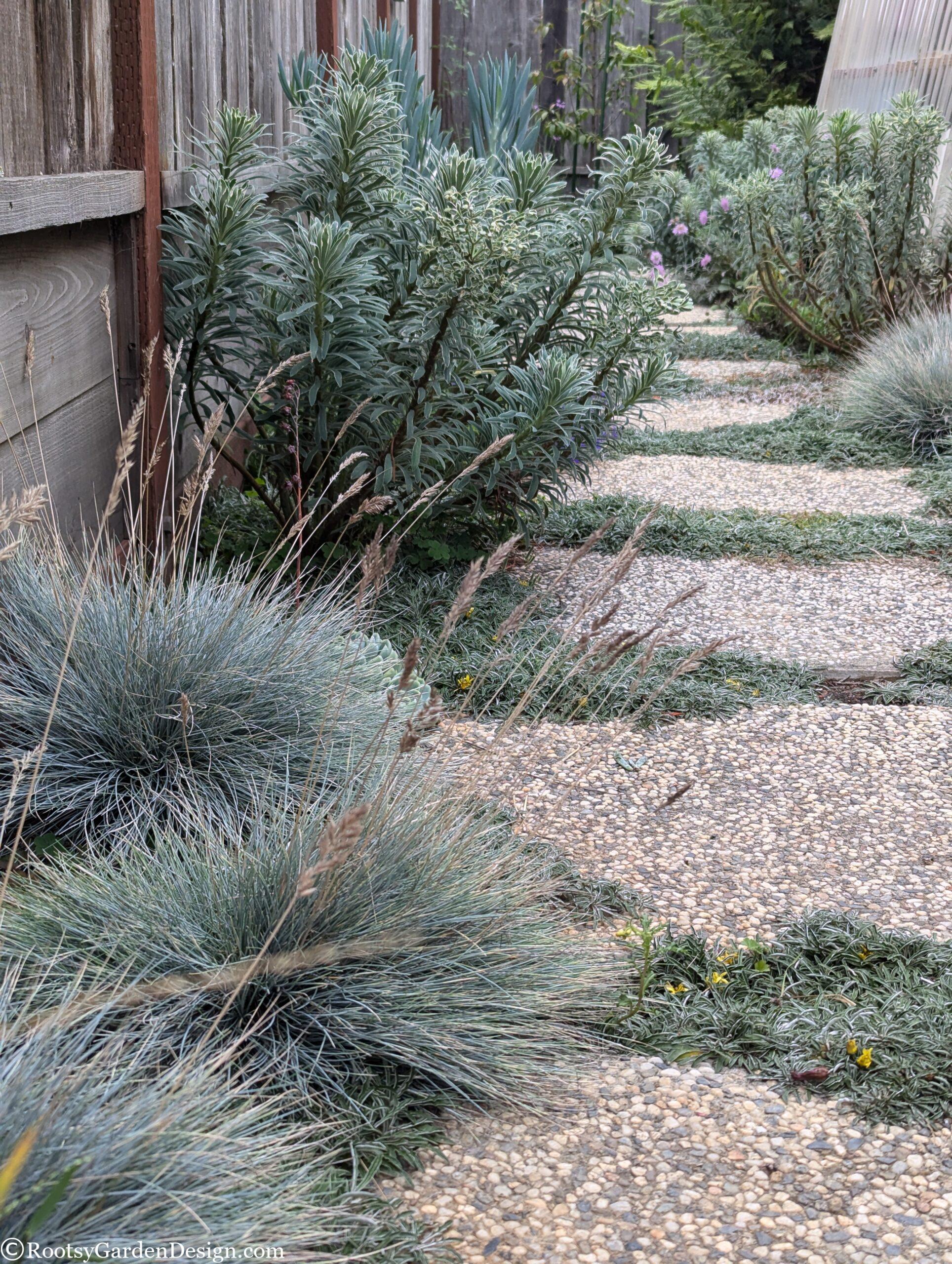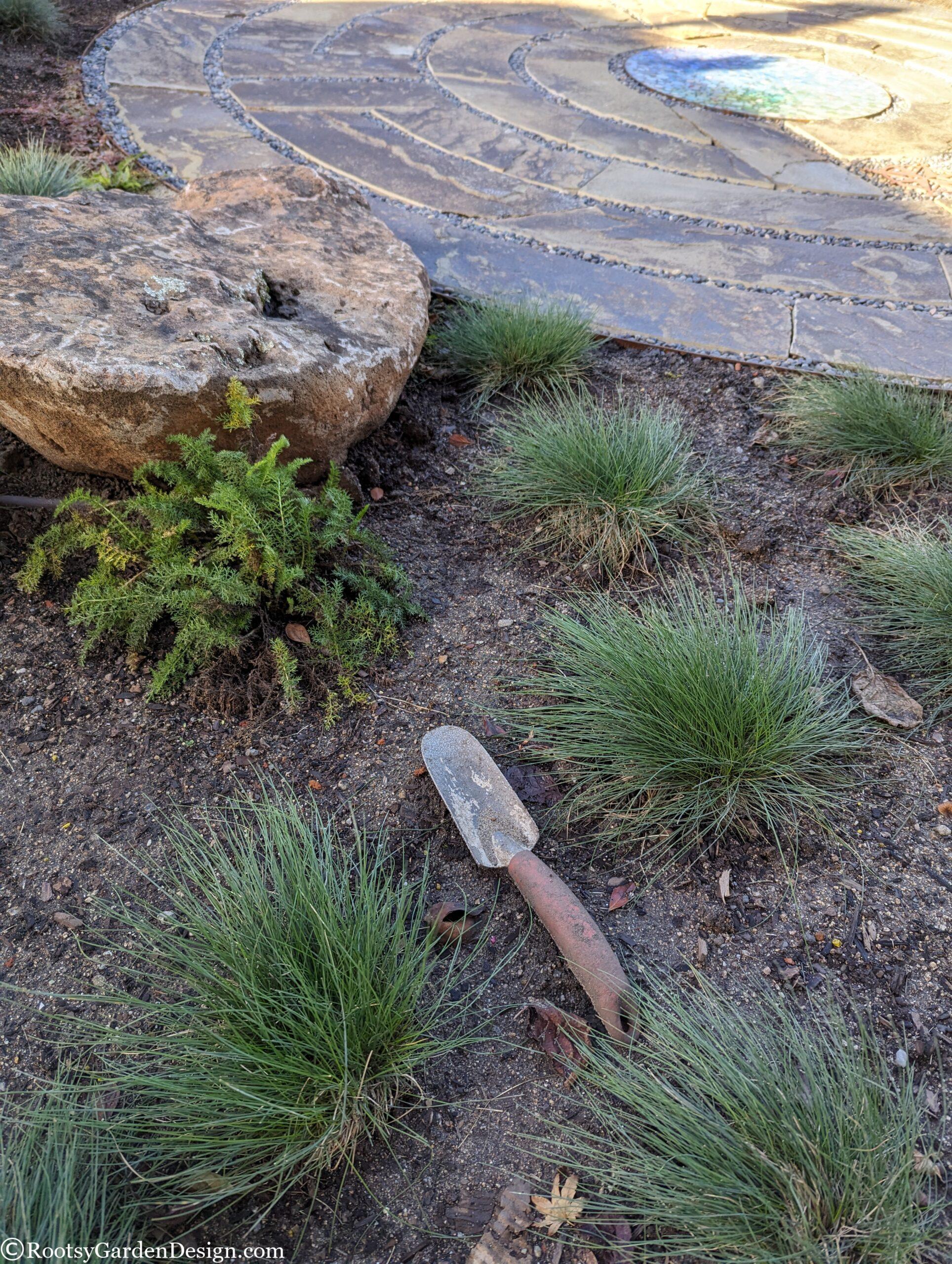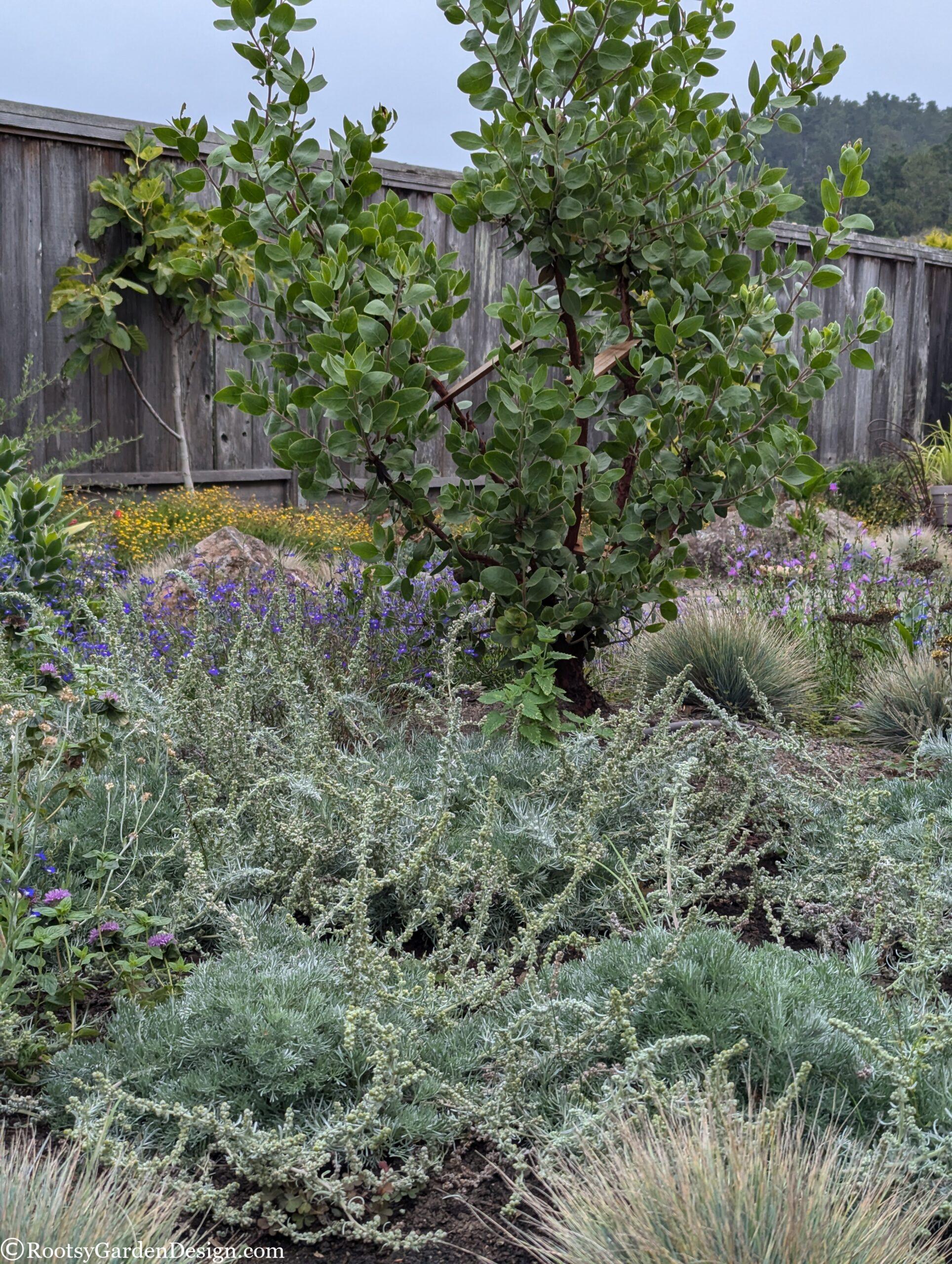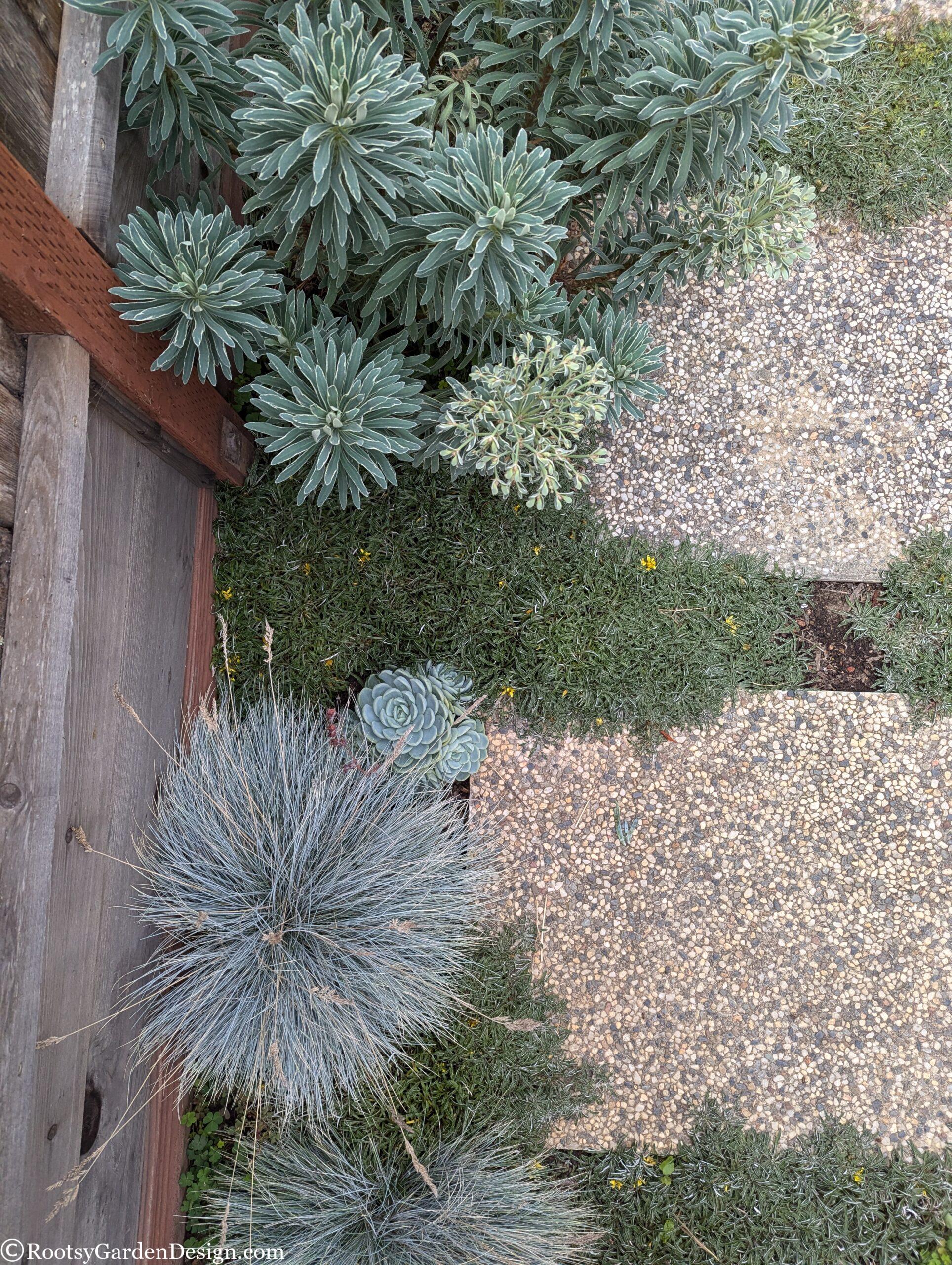When we decided to relandscape our overgrown backyard, we reached out to Rootsy Garden Design. We never would have achieved what we have without them. The process was a journey of change and discovery, that Laura the owner helped guide and inspire us. We started with a long wish list: things we wanted to retain, multiple seating areas, generous space for entertaining to make the most of a sunny corner of a relatively shady North-facing yard, emphasize California Natives. We also wanted low maintenance which included a Labyrinth. What a challenge! We worked on some of the project ourselves, Laura’s guidance there was indispensable for choosing between those tasks that we could accomplish and those better left to professionals. Laura has an unfailing eye for design, that we really have only fully appreciated now that the project is complete. Our space is peaceful, spiritual and yet functional but also full of thoughtful elements with unexpected vistas.
