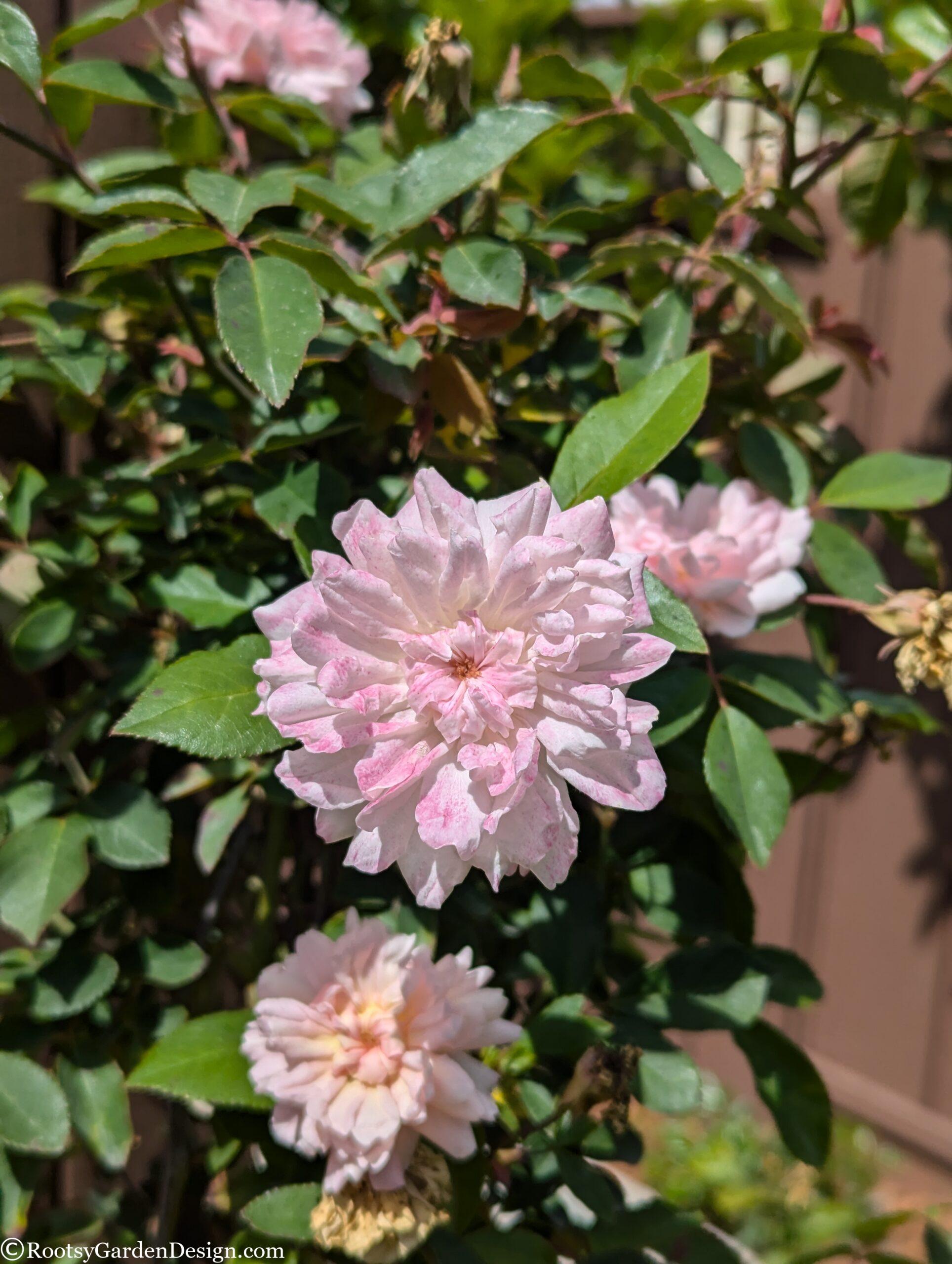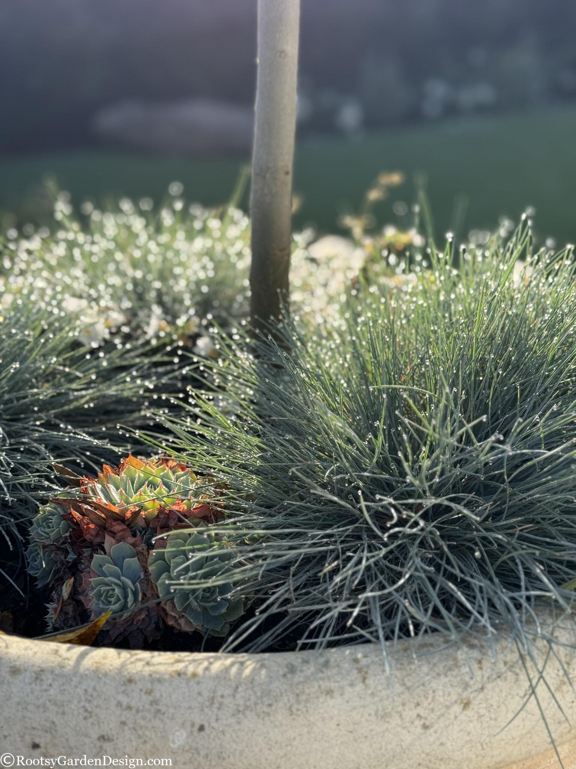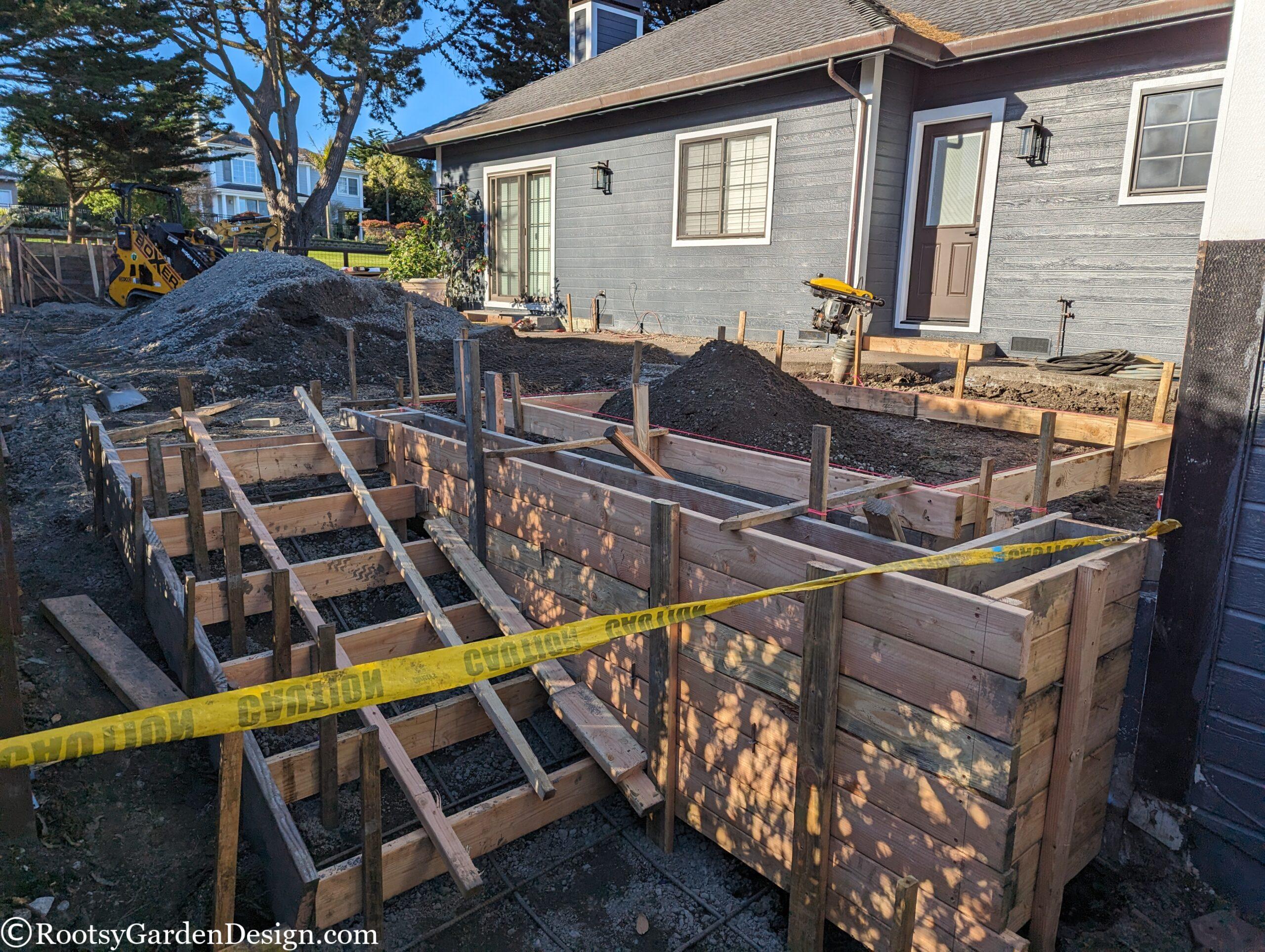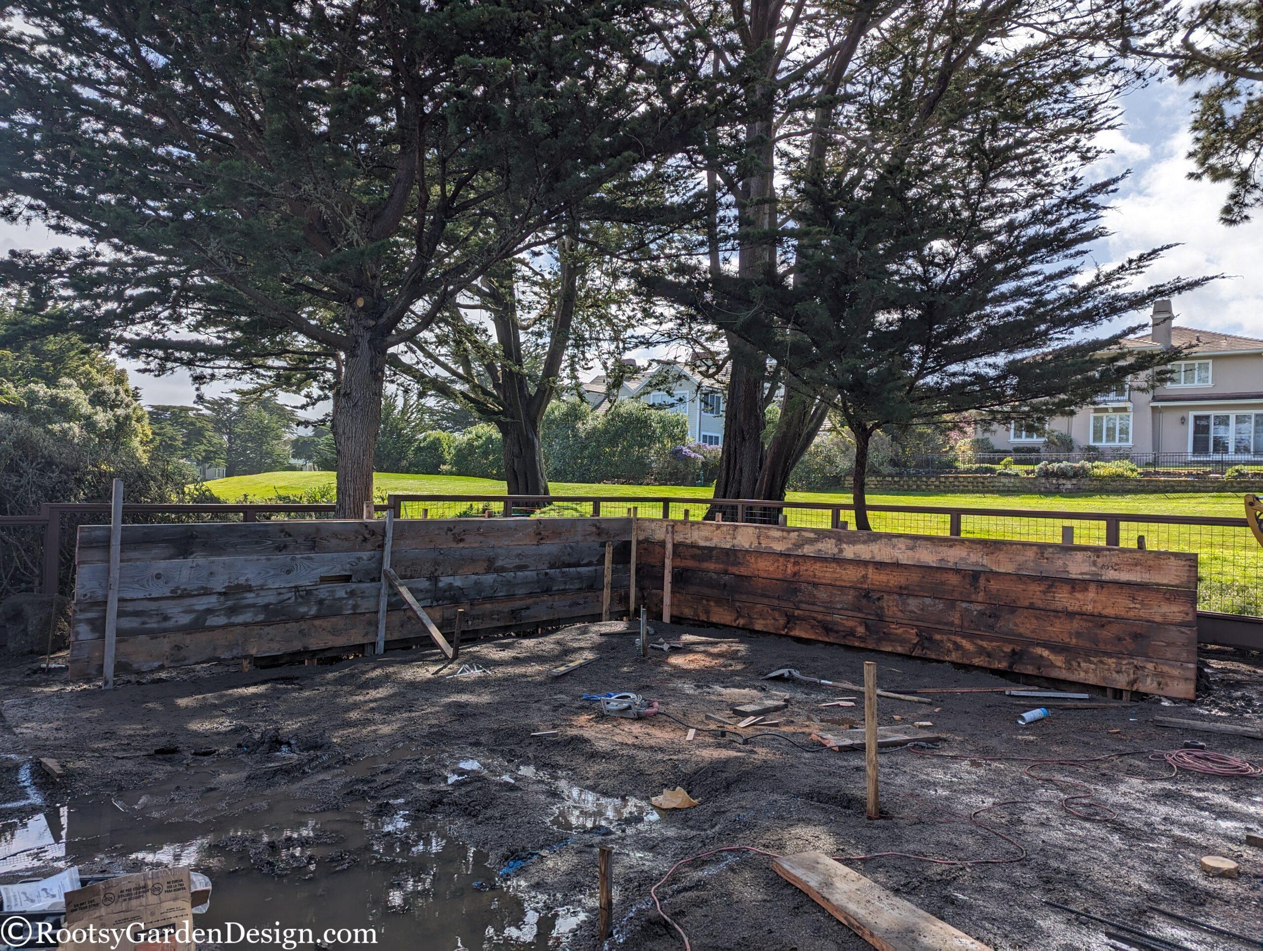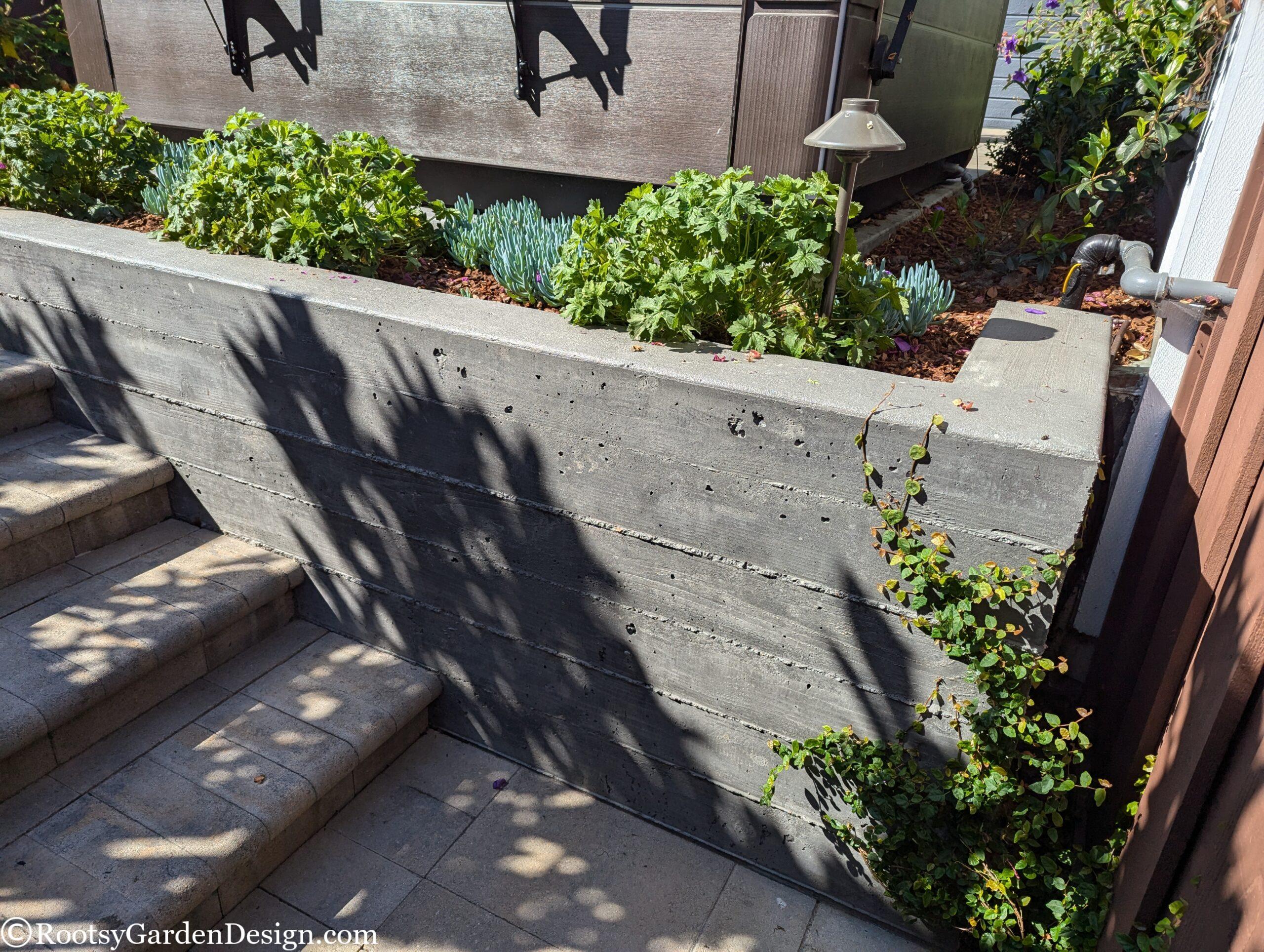 Out of chaos often surfaces beauty – and in this case it resulted in a magazine worthy landscape for our incredible clients. We were hired very late in the process. The backyard had been demolished and the contractor’s team was onsite ready to build something, but there was no plan! We quickly went to work and the late nights designing were worth it because we now have dear friends in the clients and a beautiful garden space to nurture. Their backyard is adjacent a golf course tee box so protection from rogue golf balls was a must. We designed a screening arbor anchored by a beautiful stone wall around a new fire pit patio. Now our clients can totally relax and relish in the beautiful views. Turf areas where the grandkids like to play are surrounded by colorful planting beds. Paver pathways and thyme lined bluestone steppers seamlessly connect the garden areas and lead to a new paver dining patio. Bougainvillea and jasmine vines adorn custom trellises against the house. A retaining wall and guest entrance stairs frame the new hot tub and seating area, which was made to feel more intimate with a decorative privacy screen, flowering vines and young trees.