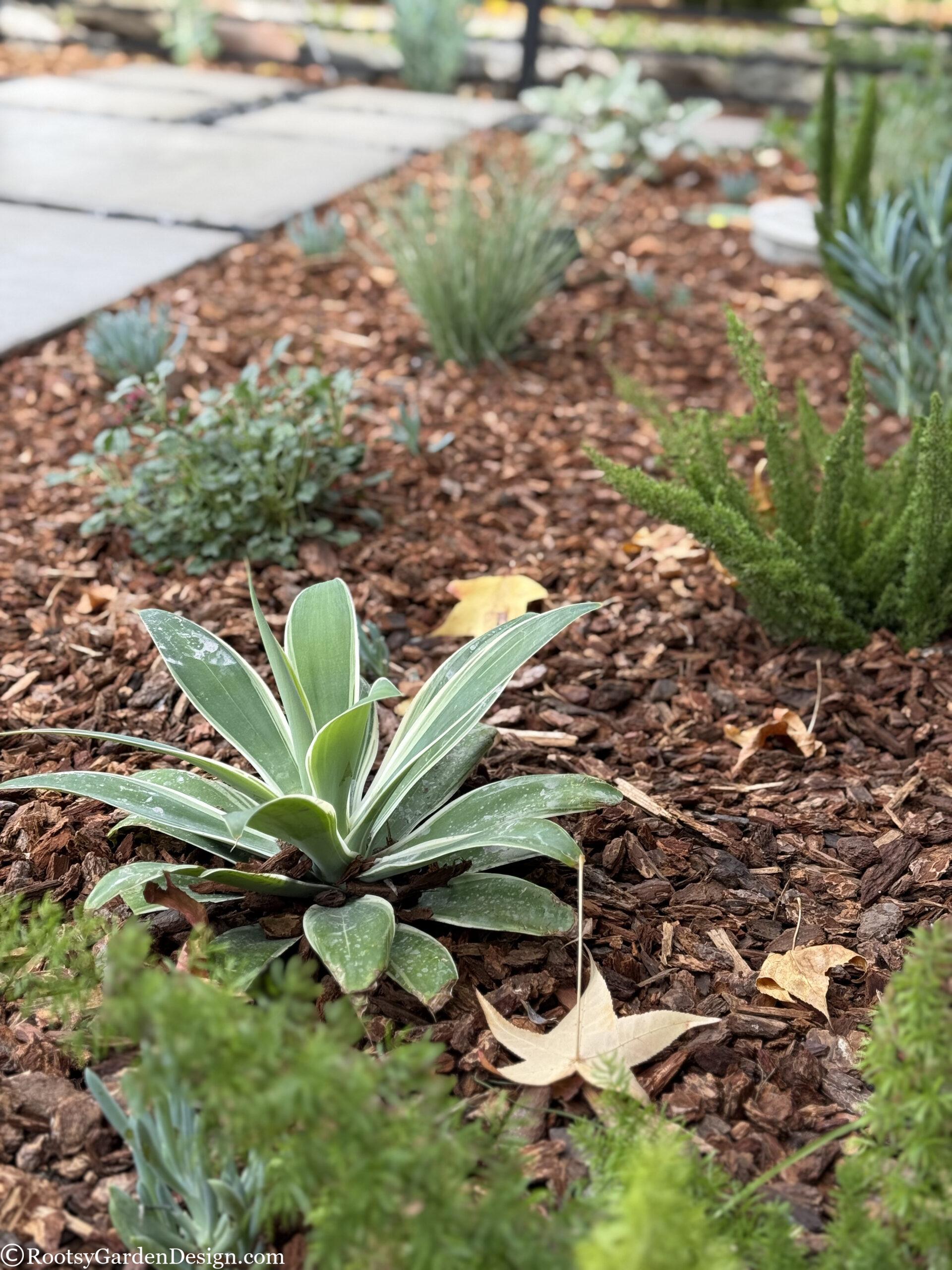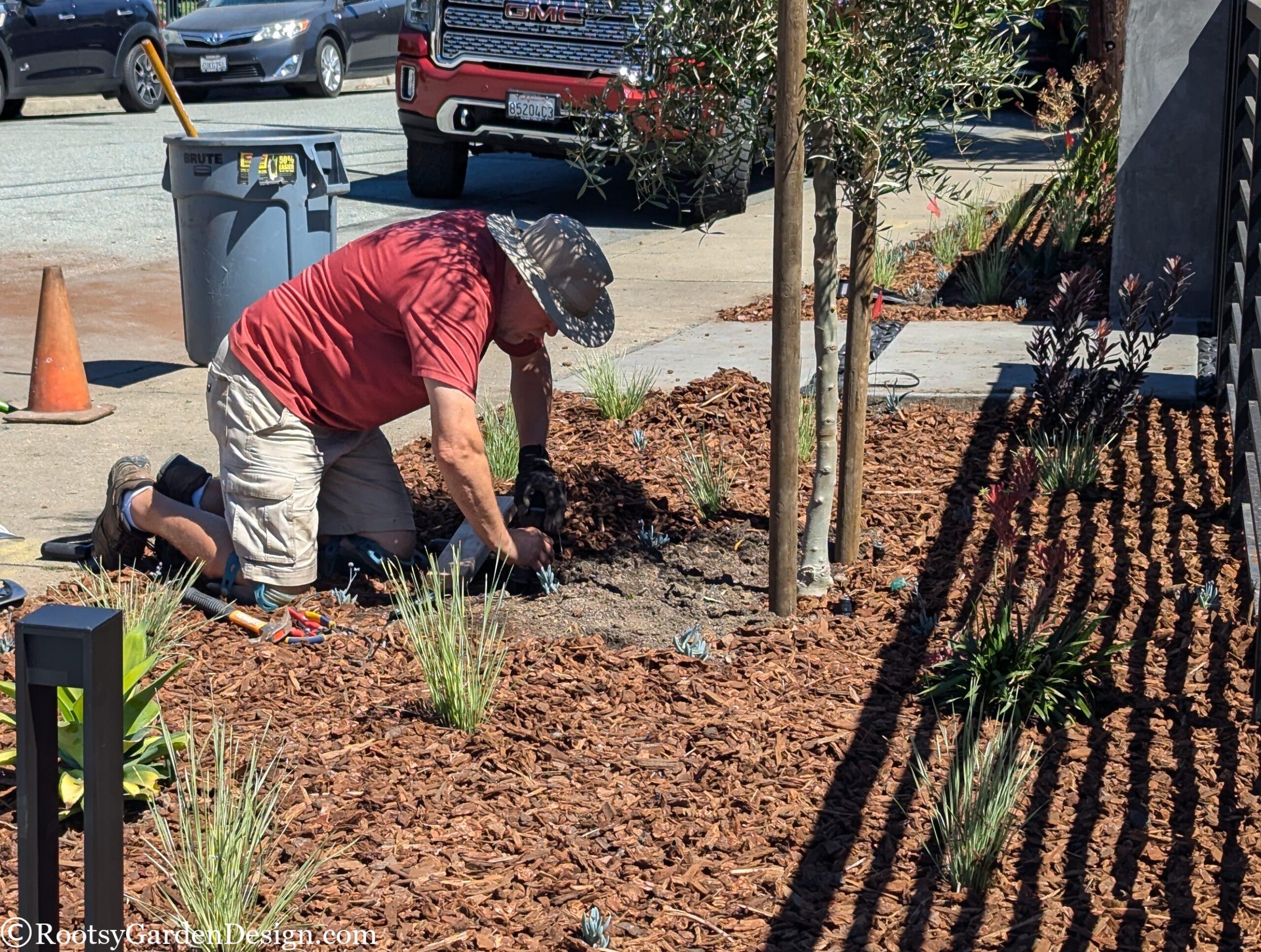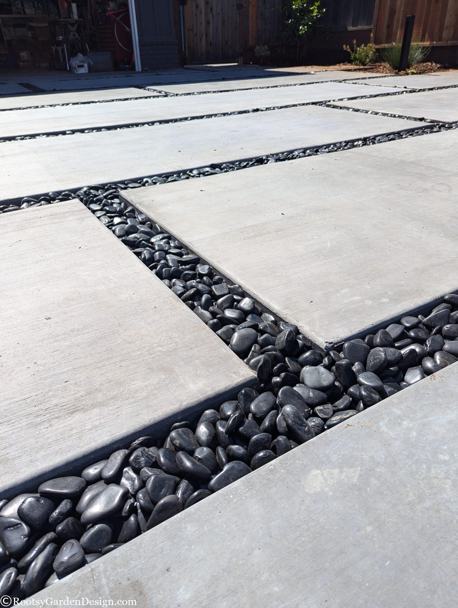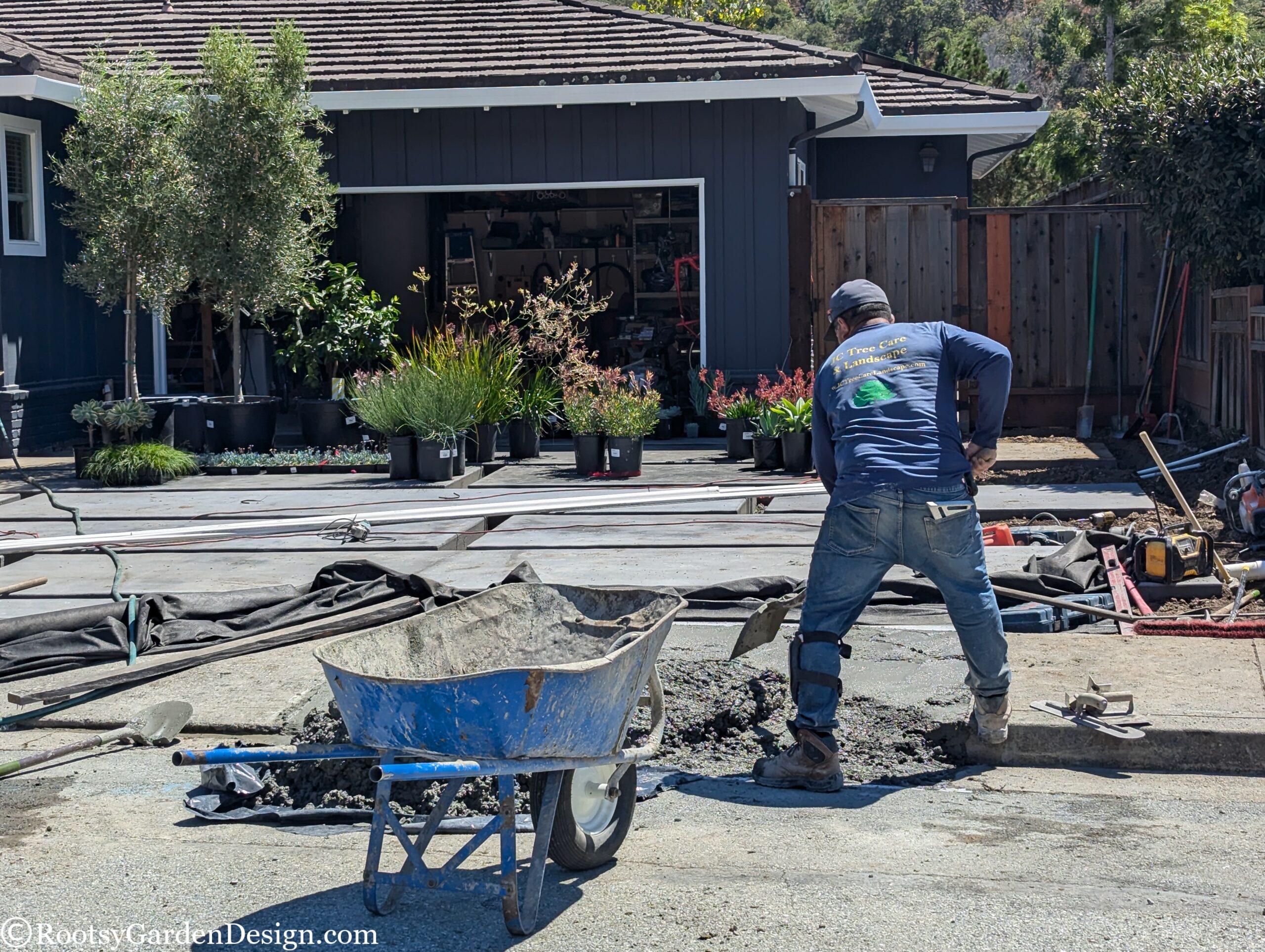 During Covid, our canine loving clients leaned into the joys of entertaining close friends and family in their backyard. So much so, they wanted to expand their outdoor social space into the front yard. They loved their classic California ranch-style home, but dreamt of a more modern aesthetic. Although the budget didn’t allow for major structural or siding changes to the house, we assured them we could satisfy their modern ambitions with landscape design elements. We assisted with everything from a new house color, new garage door, fencing, and custom concrete slabs with eye-catching pebble seams for a striking driveway, entry path and a lounge seating area. A smooth concrete address wall frames the entry path and anchors a modern horizontal aluminum gate and fence. Now when our clients host indoor-outdoor gatherings, they can focus on making their famous cocktails and rest easy knowing the family pups are safely secure on the property. This project was also a great opportunity to take advantage of the city’s Lawn-To-Garden rebate program. We designed a lower water use planting plan and provided everything our clients needed to secure over $2k back in their pockets.