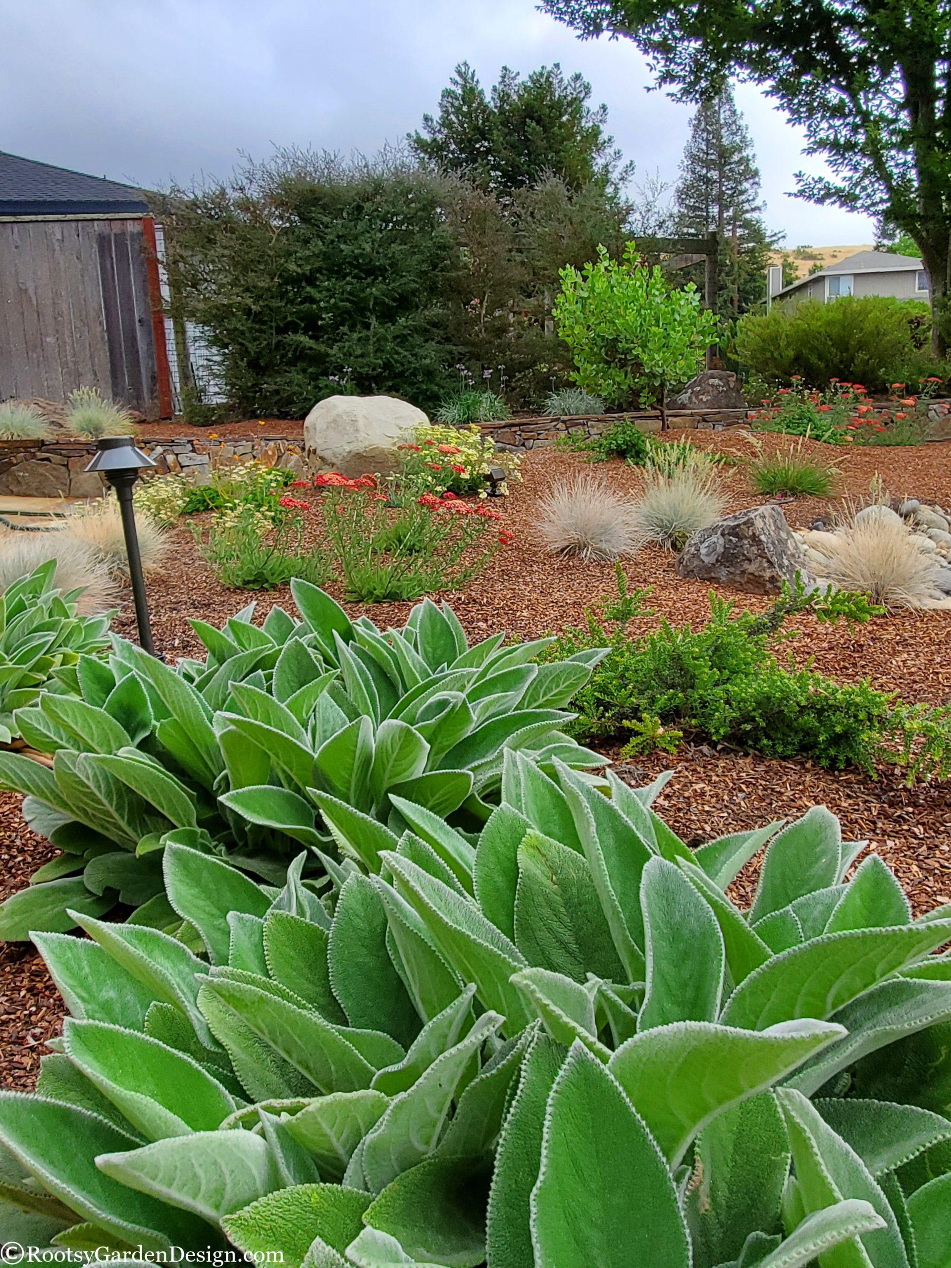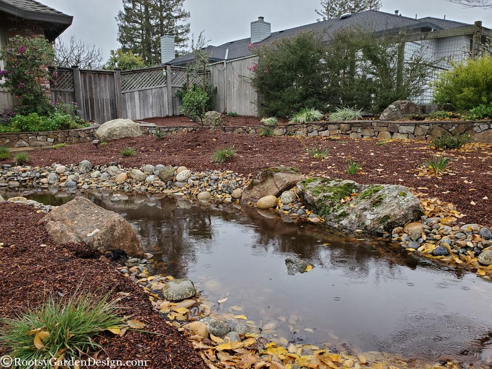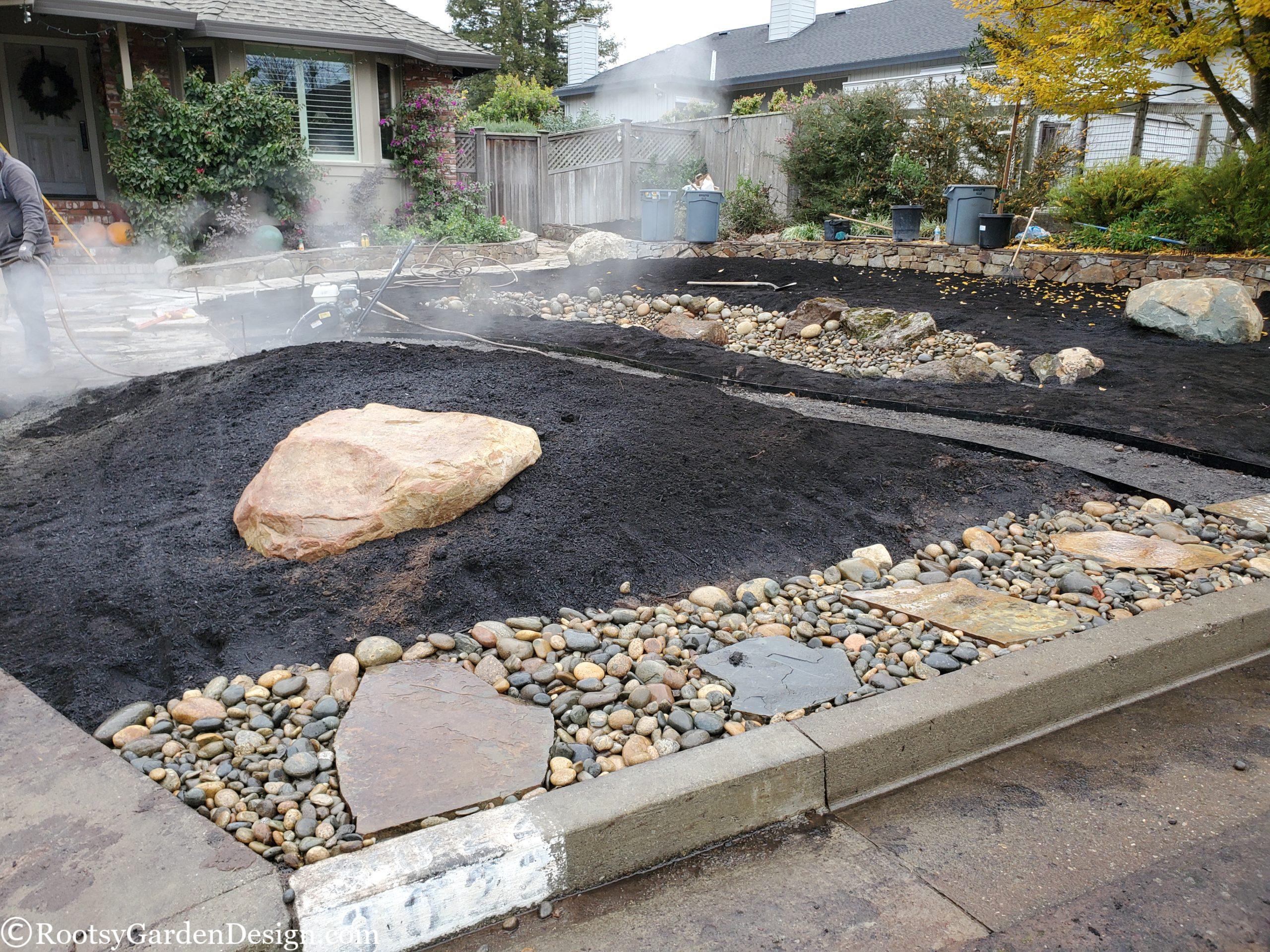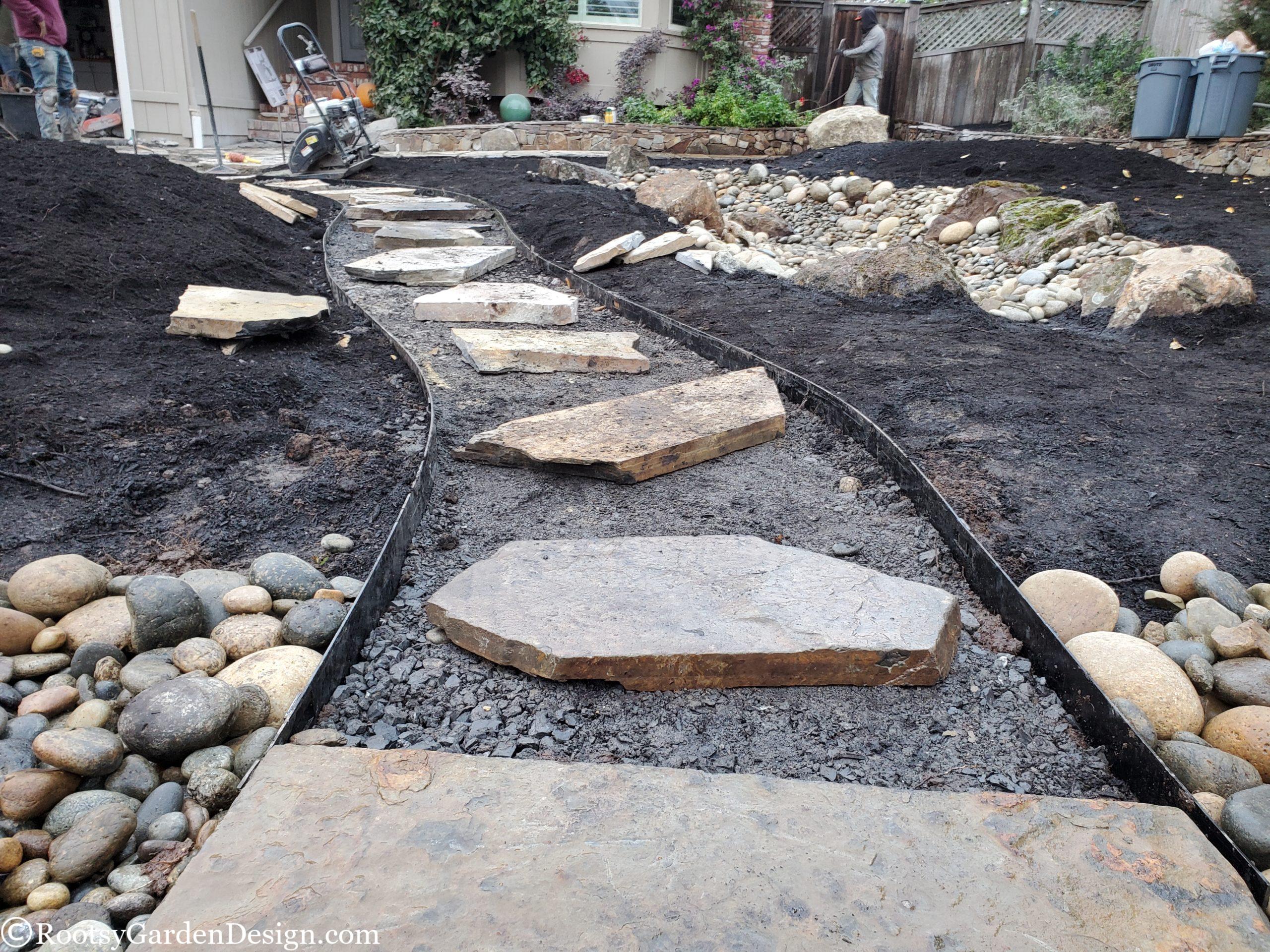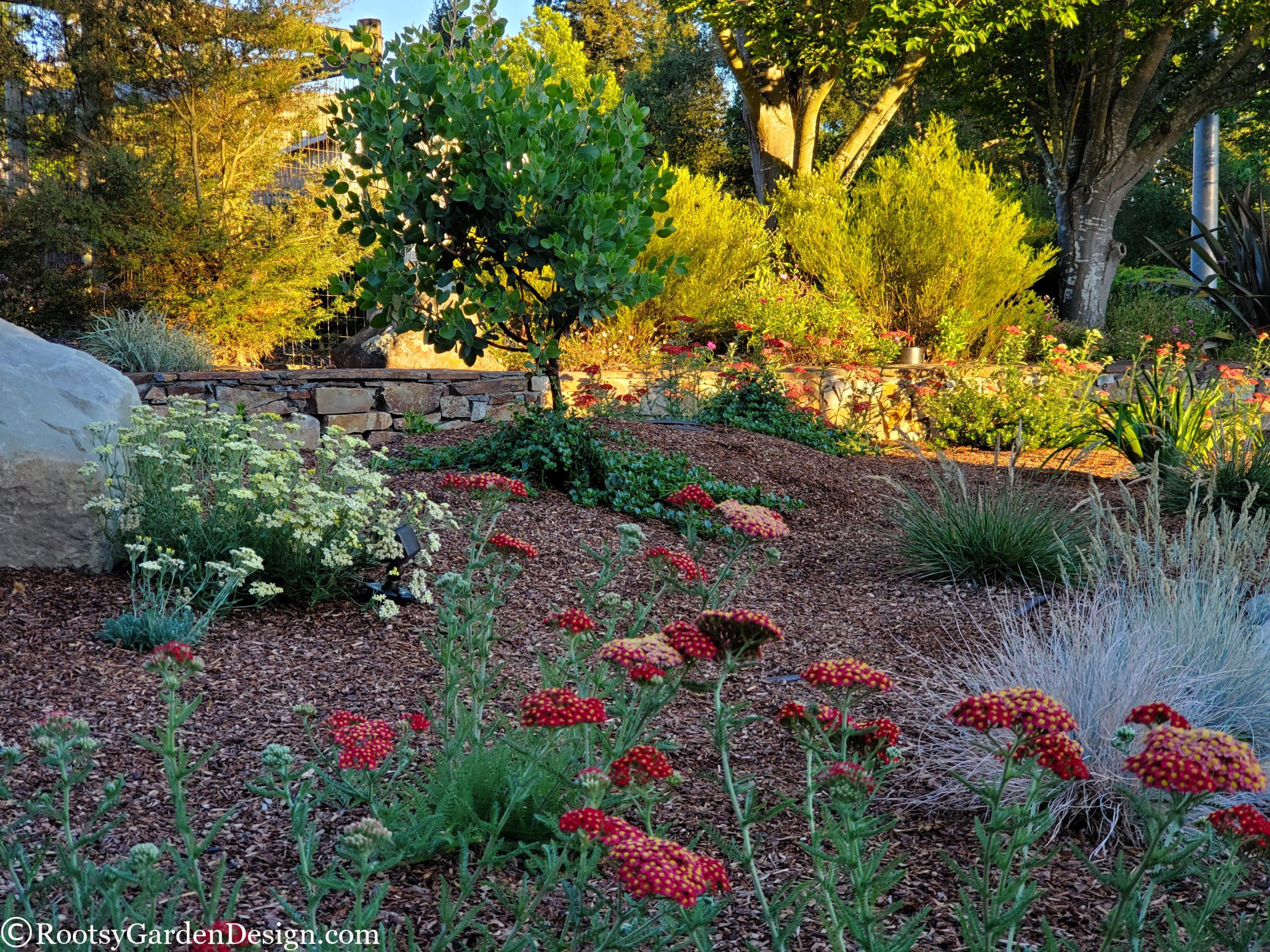 We reached out to Rootsy Garden Design to help us qualify for the “Cash for Grass” Rebate program in our city. Not only did we get the lawn replacement rebate, Rootsy exceeded all expectations and created a beautiful and dynamic front yard garden space we love. Our designer, Laura, transformed our flat front lawn into an imaginative drought tolerant design involving native plants, a rainwater swale, elevated berms, artistically placed boulders and flagstone pathways. Laura’s constant communication with the work crew and attention to every detail along the way was exceptional. Since completion, our yard has drawn an enormous amount of positive feedback from neighbors and we’ve even had people knocking on our front door to get the designer’s contact info. It was a great experience working with Rootsy Garden Design.