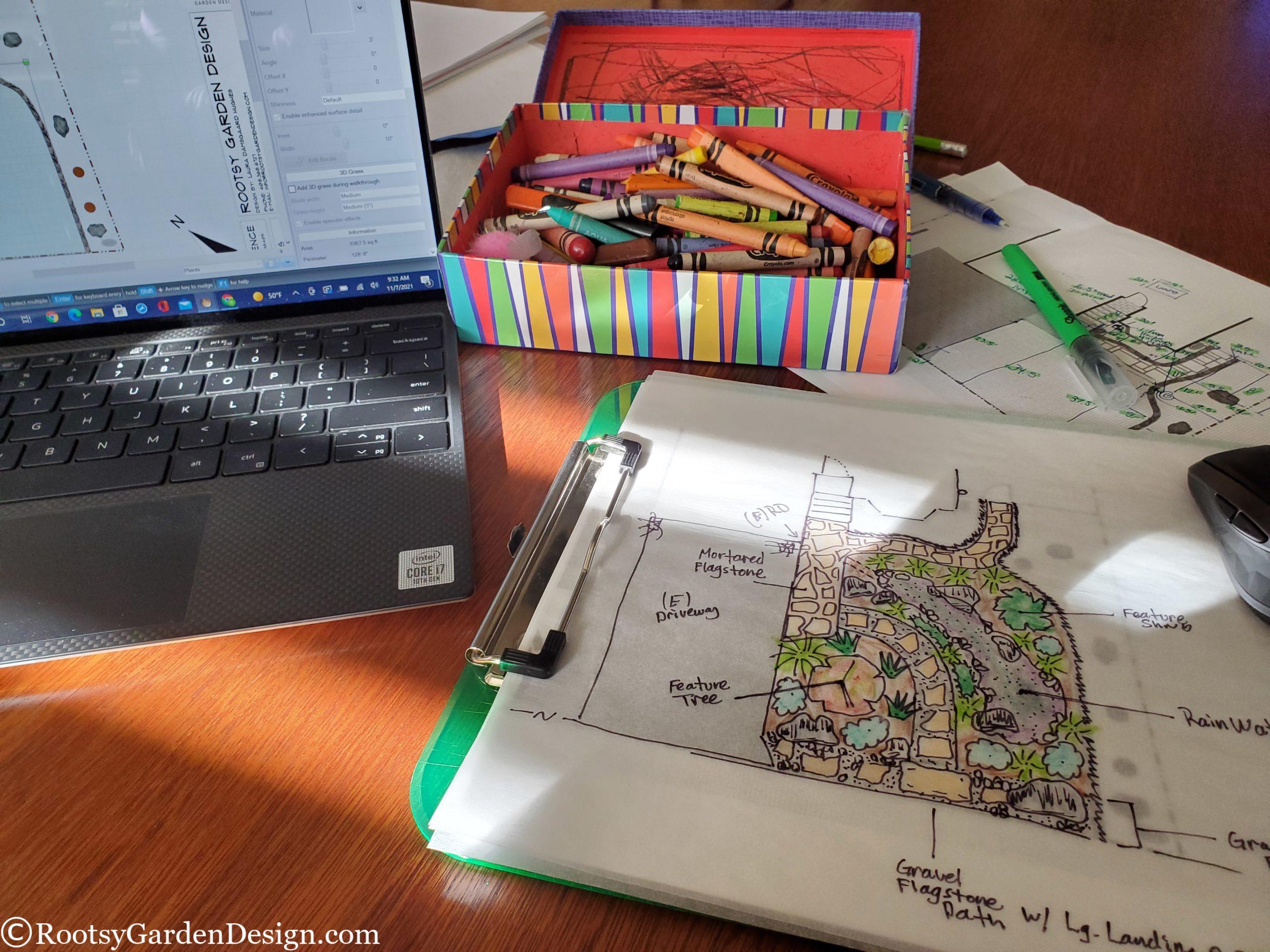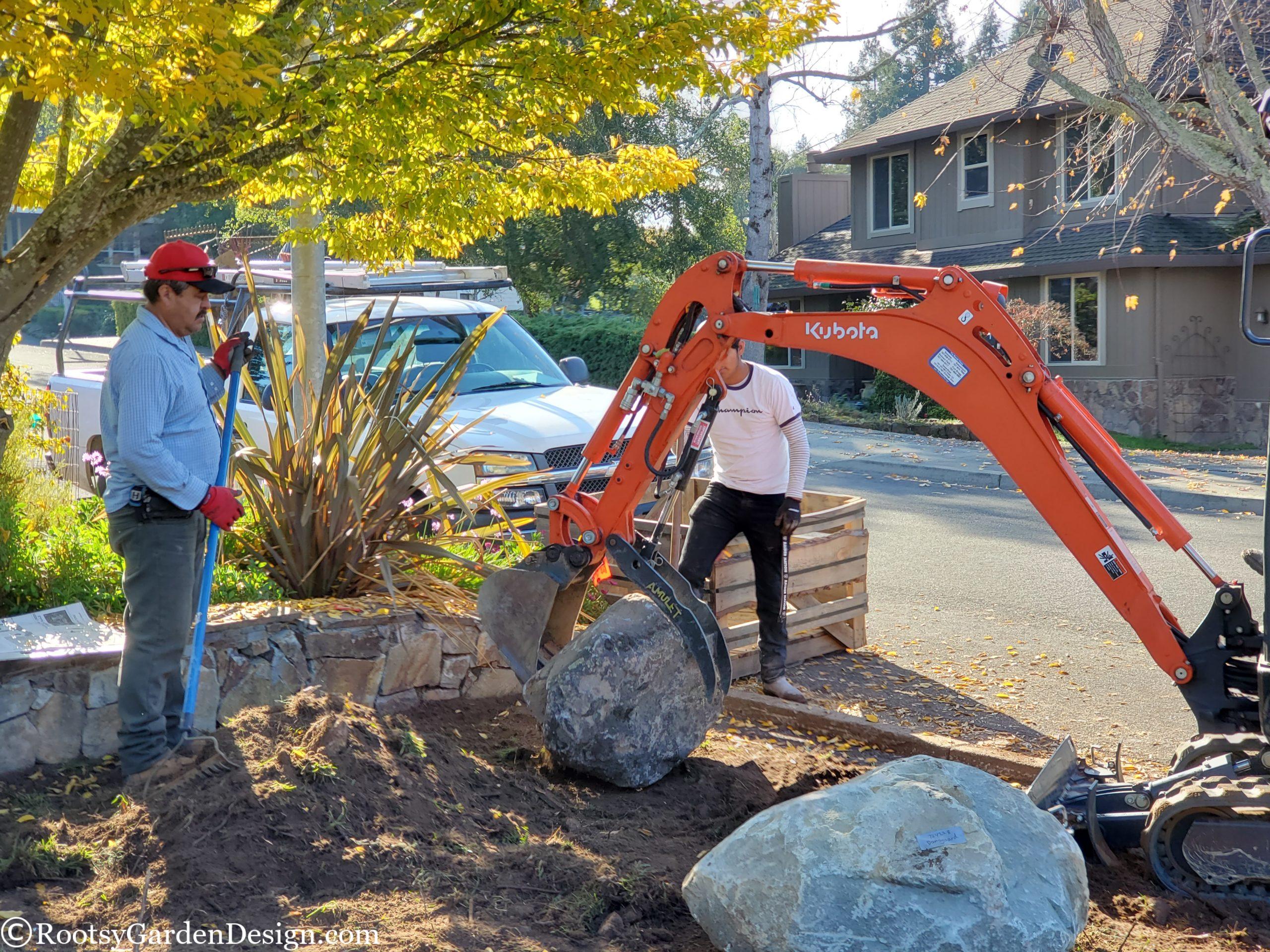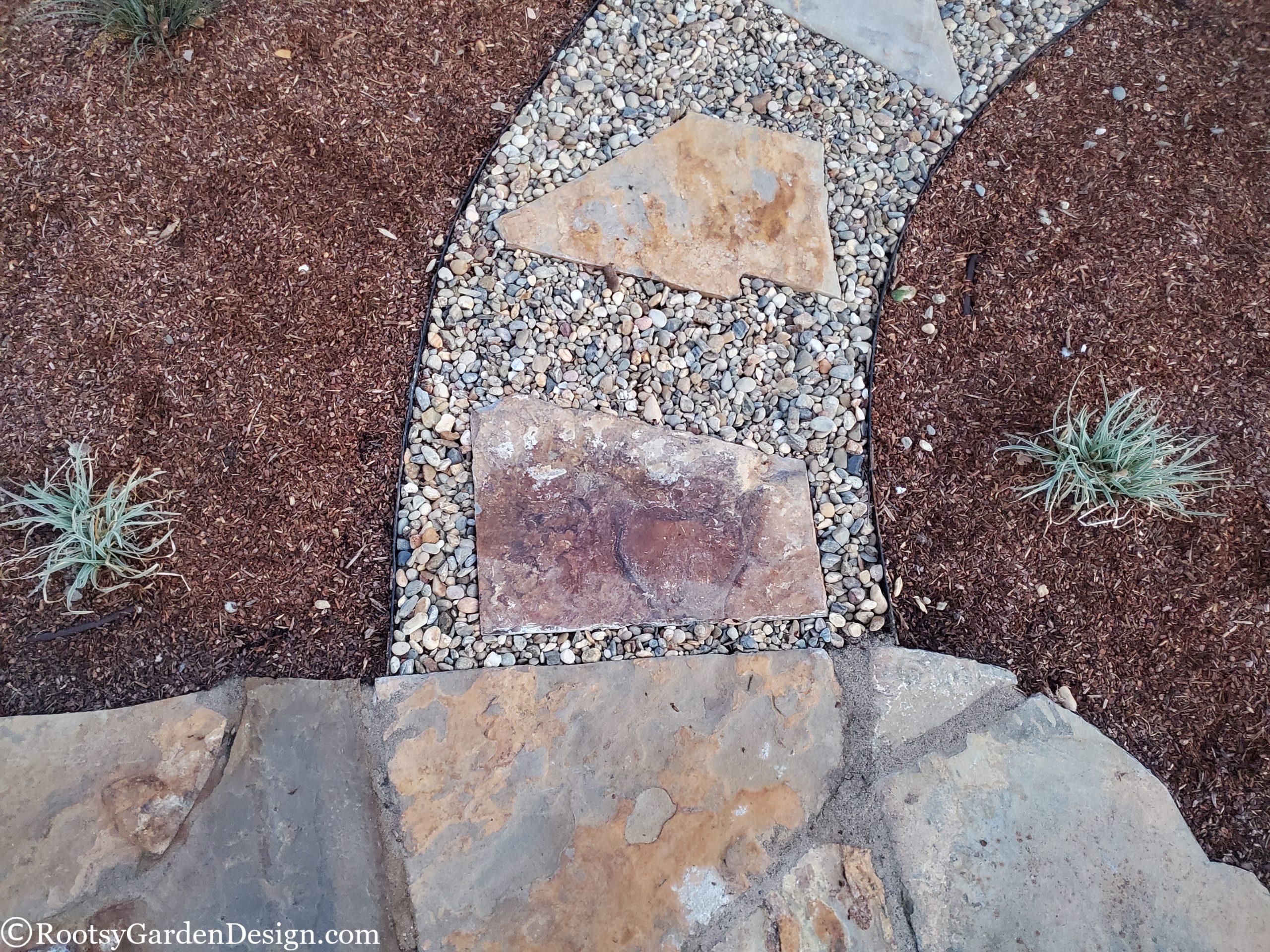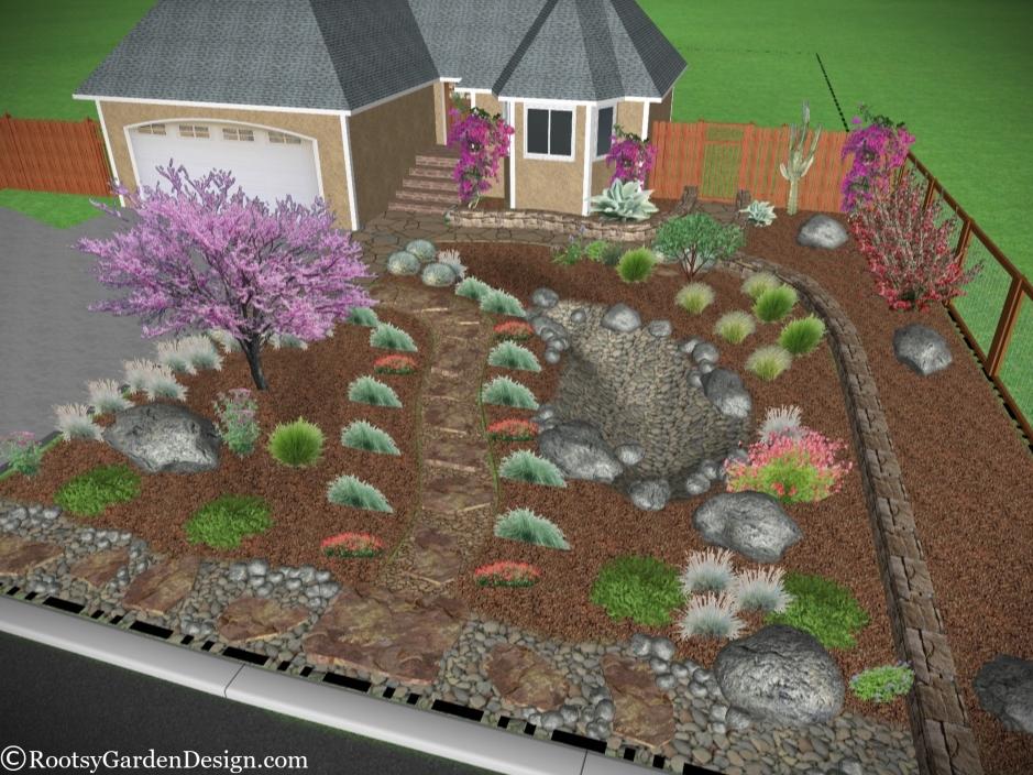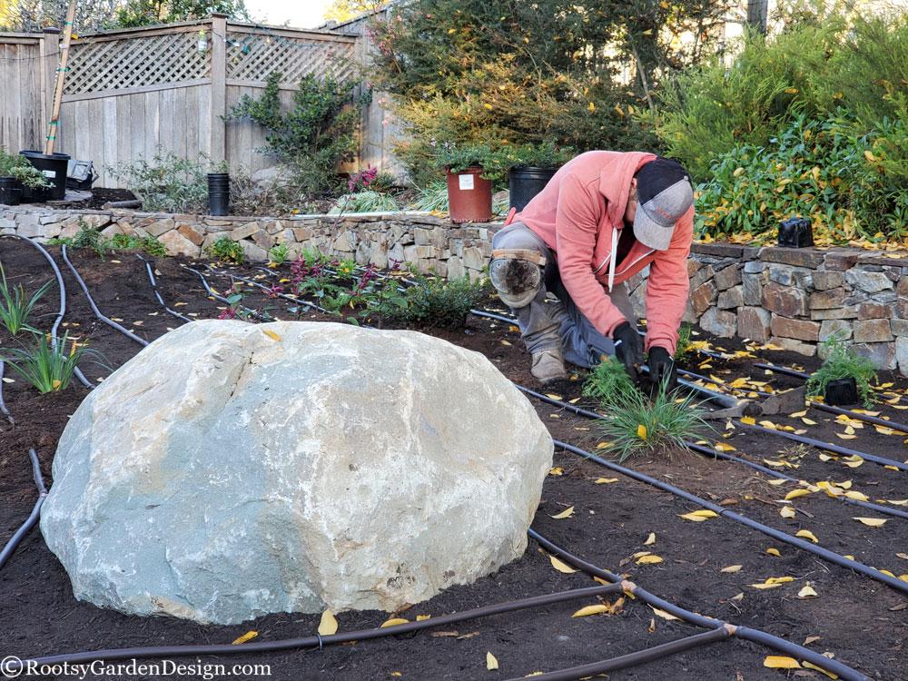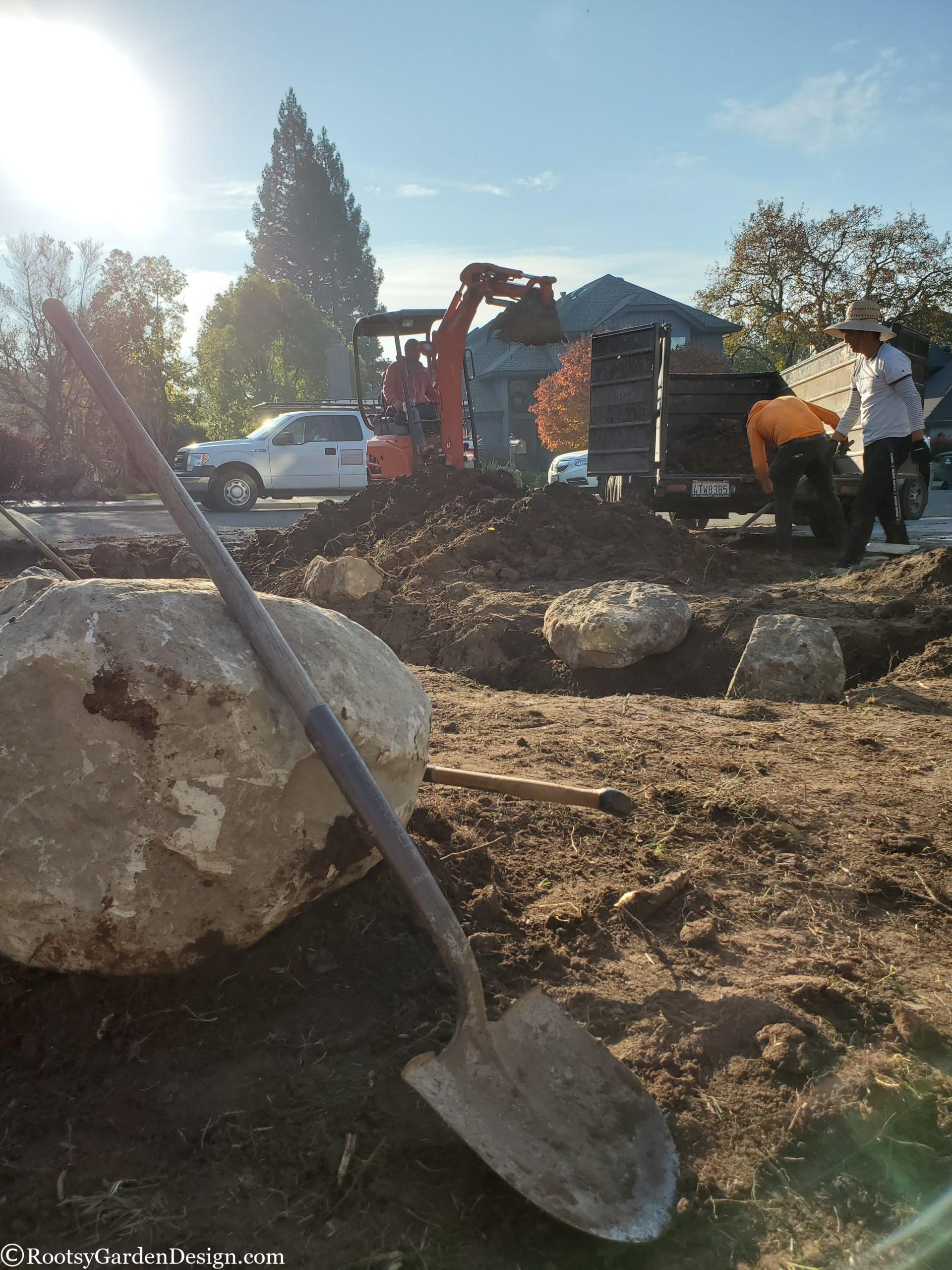 We reached out to Rootsy Garden Design to help us qualify for the “Cash for Grass” Rebate program in our city. Not only did we get the lawn replacement rebate, Rootsy exceeded all expectations and created a beautiful and dynamic front yard garden space we love. Our designer, Laura, transformed our flat front lawn into an imaginative drought tolerant design involving native plants, a rainwater swale, elevated berms, artistically placed boulders and flagstone pathways. Laura’s constant communication with the work crew and attention to every detail along the way was exceptional. Since completion, our yard has drawn an enormous amount of positive feedback from neighbors and we’ve even had people knocking on our front door to get the designer’s contact info. It was a great experience working with Rootsy Garden Design.
